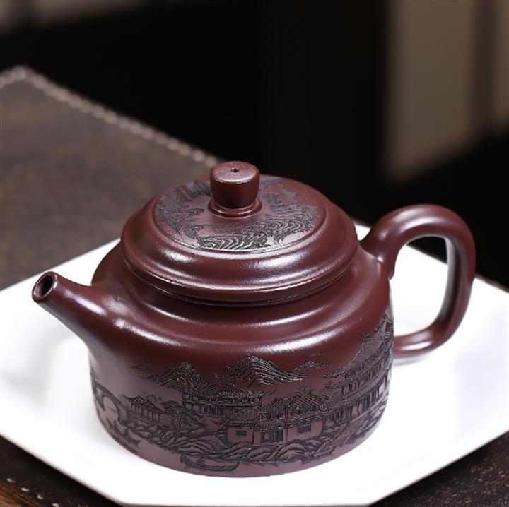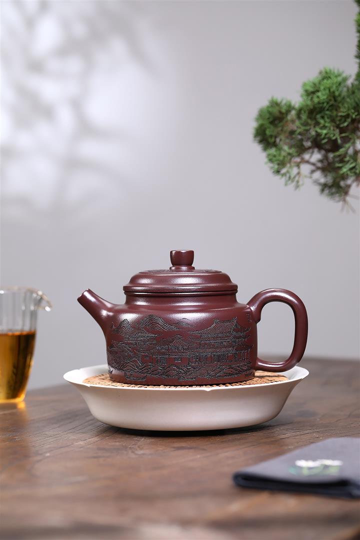 450cc原礦紫泥滿刻大德鐘壺POT8116