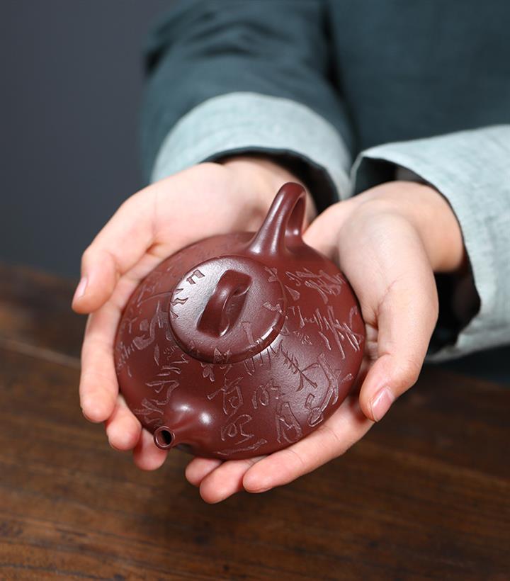 200cc原礦紫泥刻字景舟石瓢茶壺POT8125