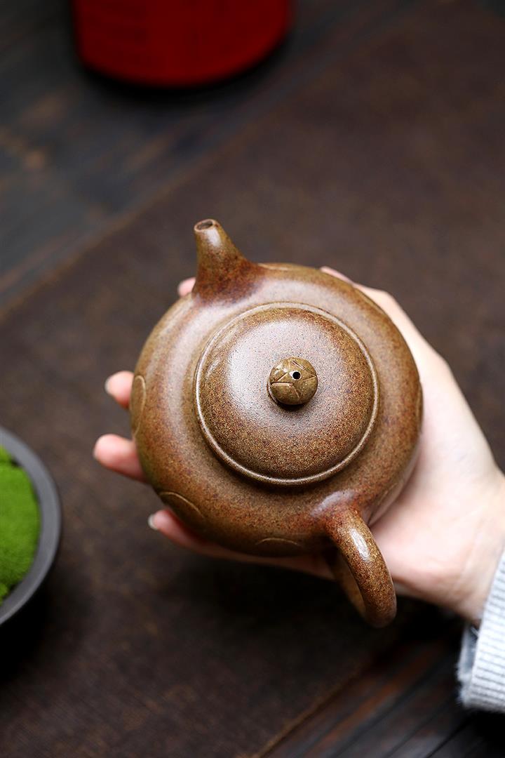 235cc原礦黃金段泥泥繪蓮蓬漢瓦茶壺POT8143