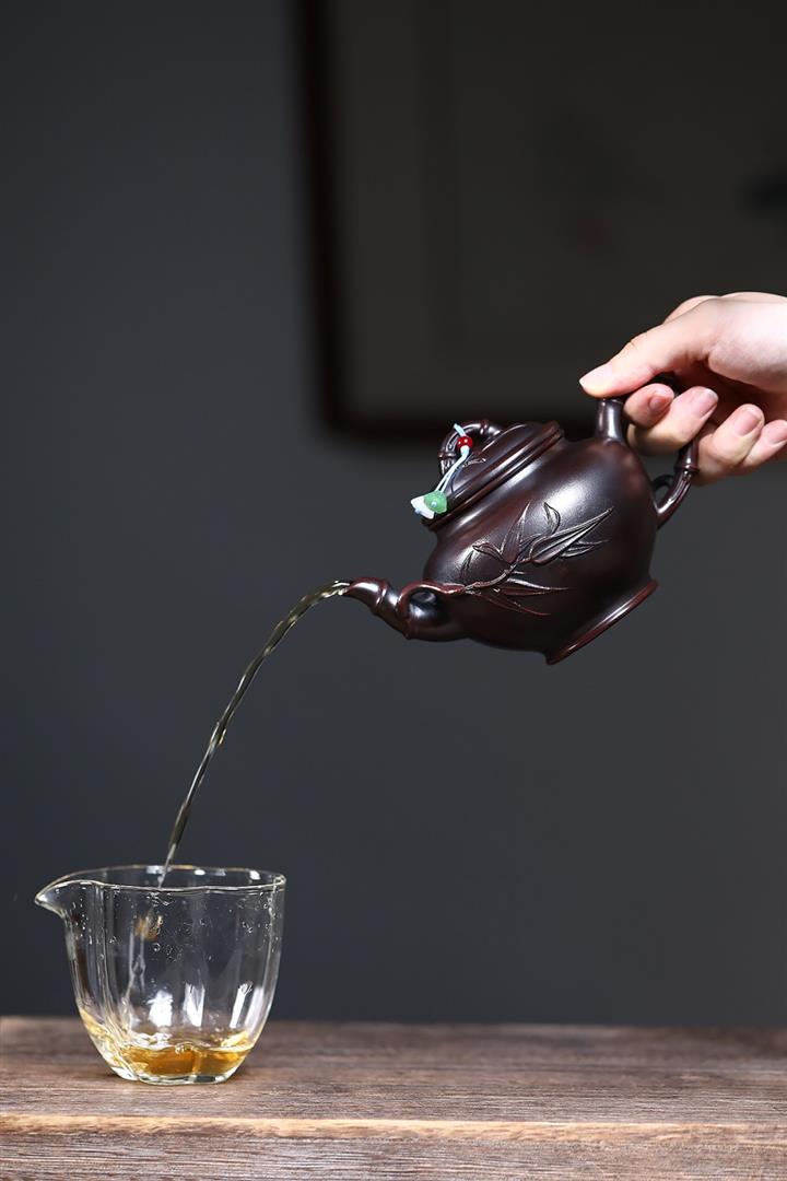 【泥料特點】砂土氣重,似淳實農民,日久使用,漸露鋒芒,養成變化,溫潤莊重。紫砂是壹種雙重氣孔結構的多孔性材質,氣孔微細,密度高。用紫砂壺沏茶,不失原味,且香不渙散,得茶之真香真味。紫砂使用越久,壺身色澤越發光亮照人,氣韻溫雅。紫砂壺長久使用器身會因撫摸擦拭,變得越發溫潤光澤。