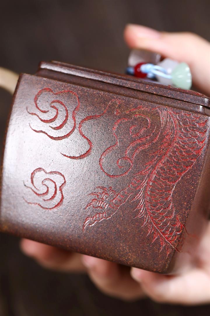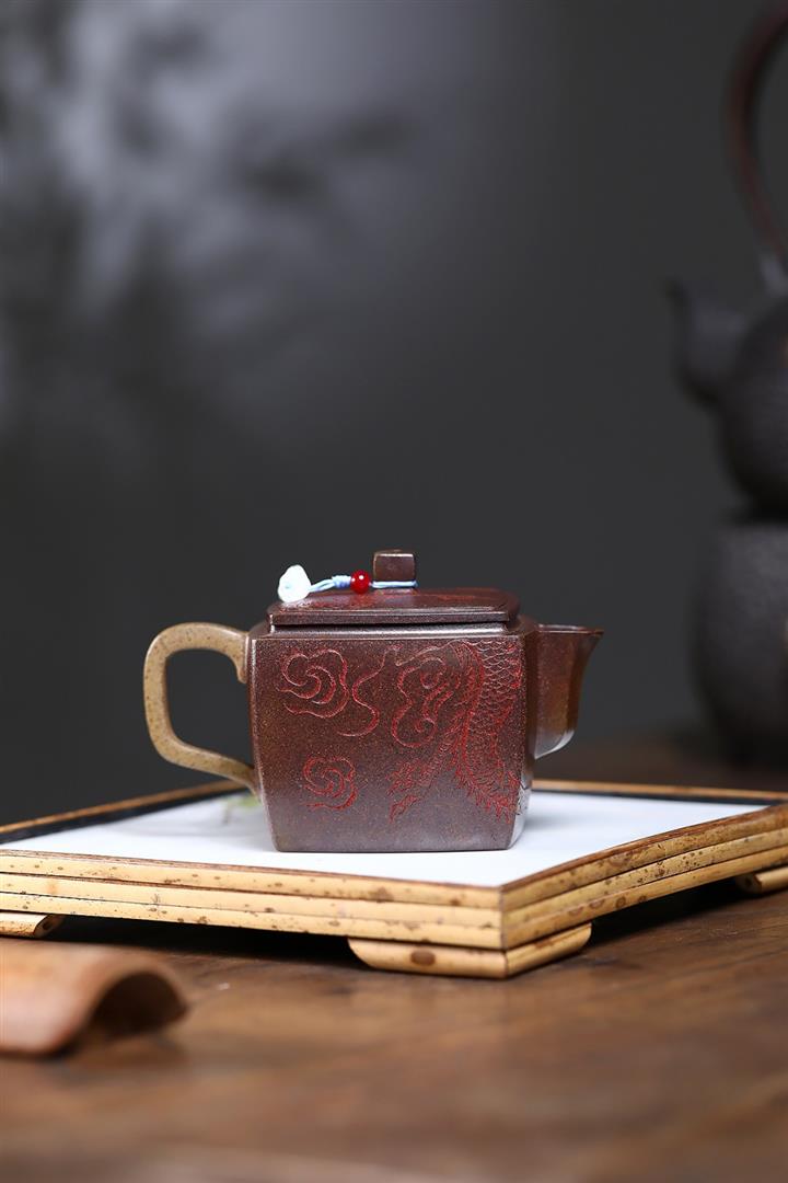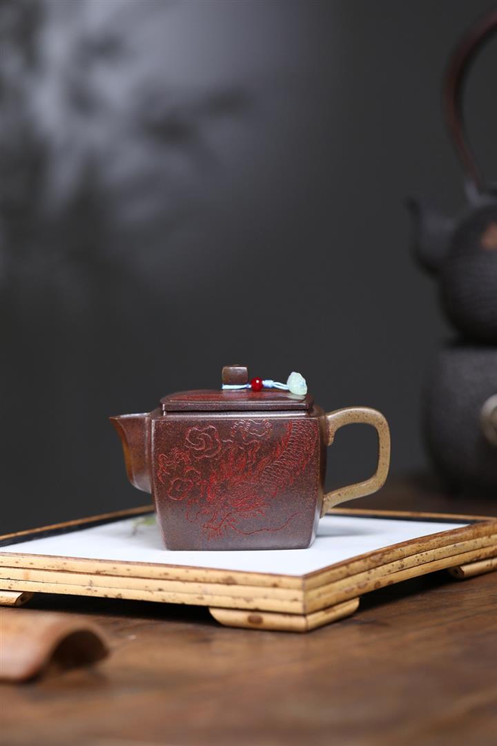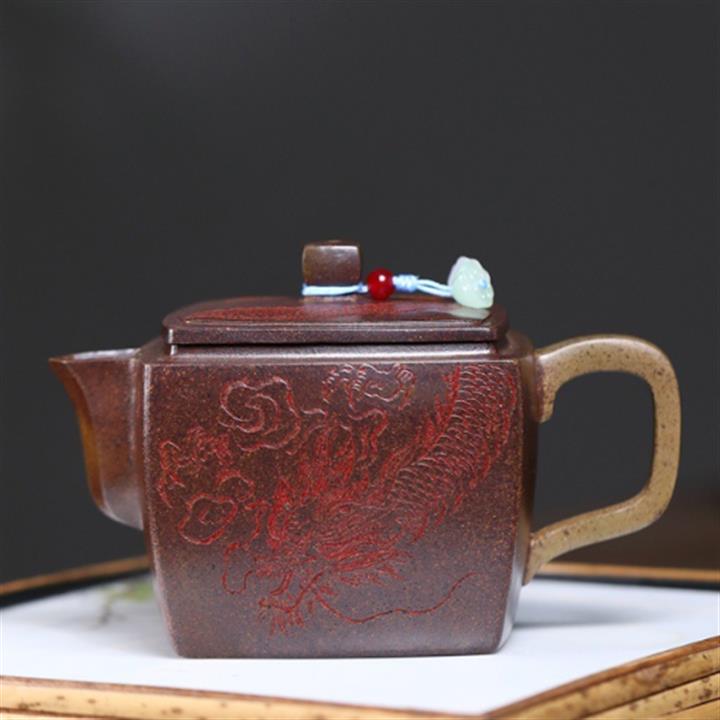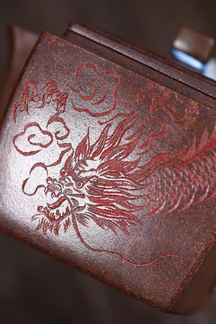 200cc原礦古紅泥遊龍戲鳳漢瓦茶壺POT8137
