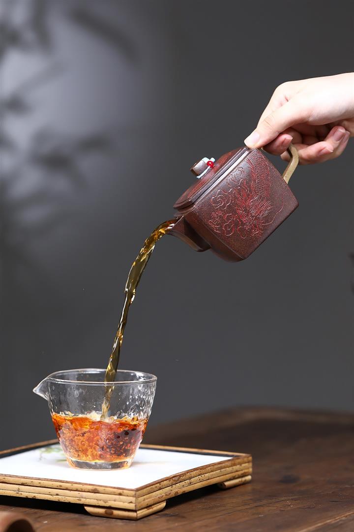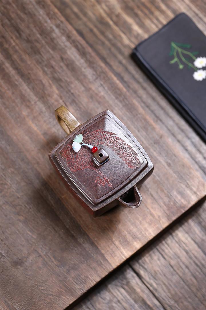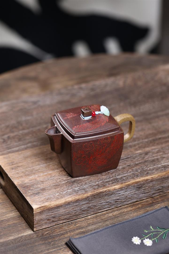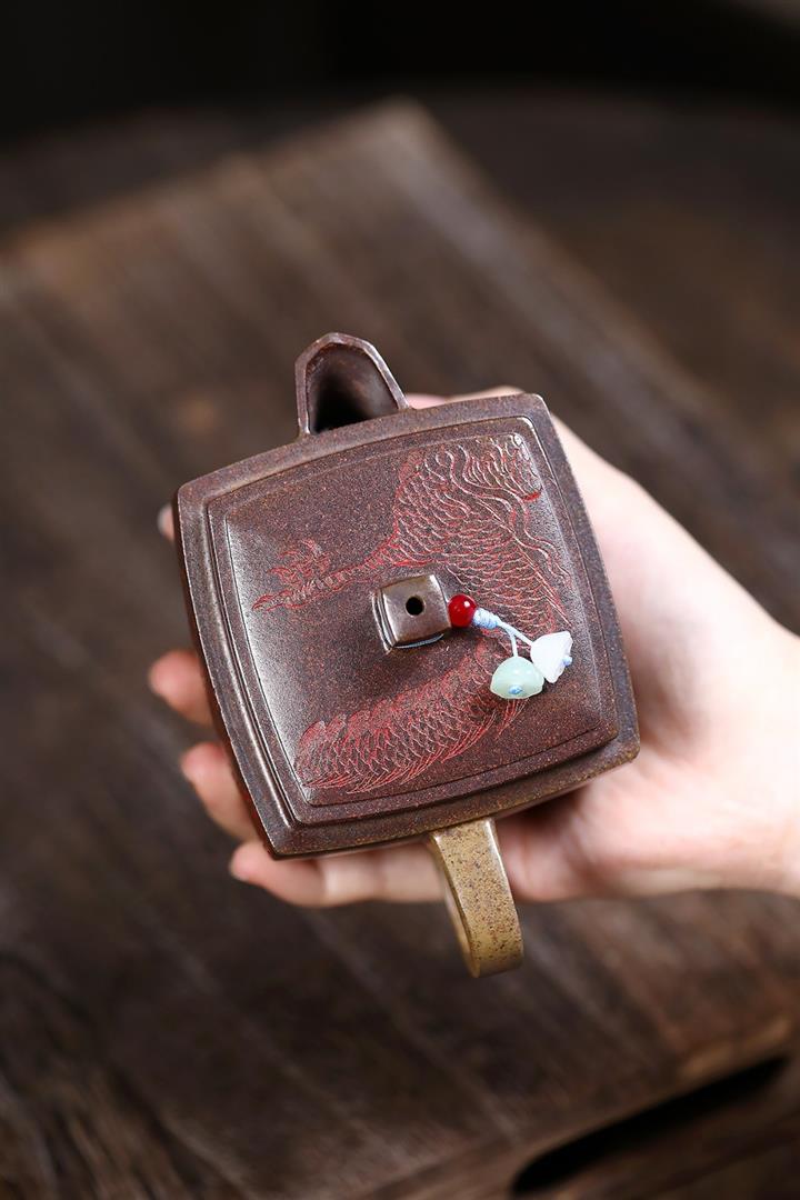 200cc原礦古紅泥遊龍戲鳳漢瓦茶壺POT8137
