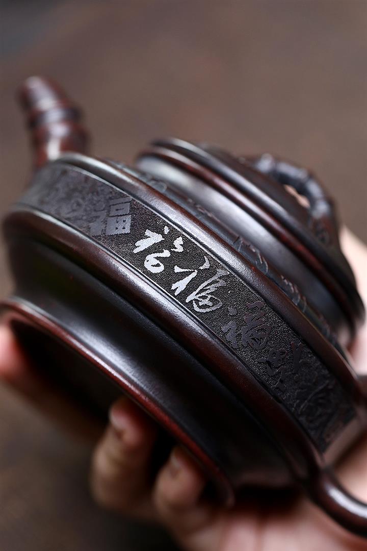 180cc原礦龍骨金砂刻畫禦景茶壺POT8142