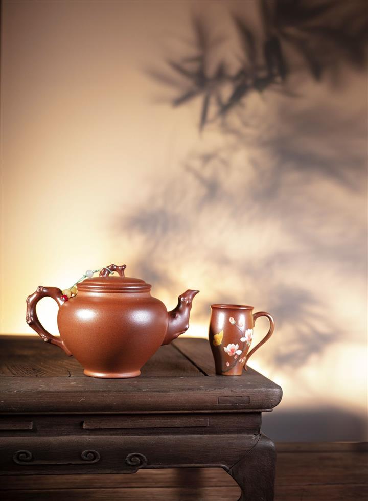【泥料特點】砂土氣重,似淳實農民,日久使用,漸露鋒芒,養成變化,溫潤莊重。紫砂是壹種雙重氣孔結構的多孔性材質,氣孔微細,密度高。用紫砂壺沏茶,不失原味,且香不渙散,得茶之真香真味。紫砂使用越久,壺身色澤越發光亮照人,氣韻溫雅。紫砂壺長久使用器身會因撫摸擦拭,變得越發溫潤光澤。