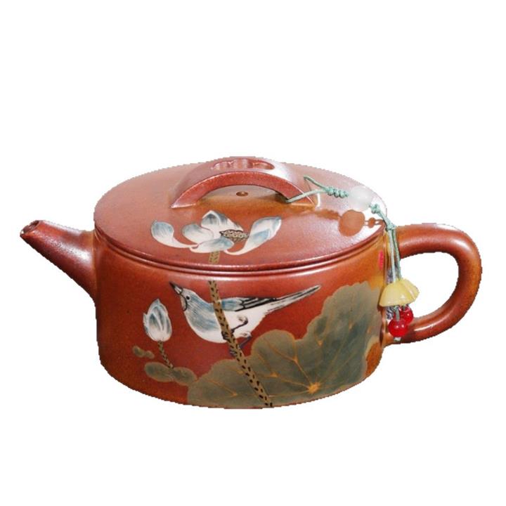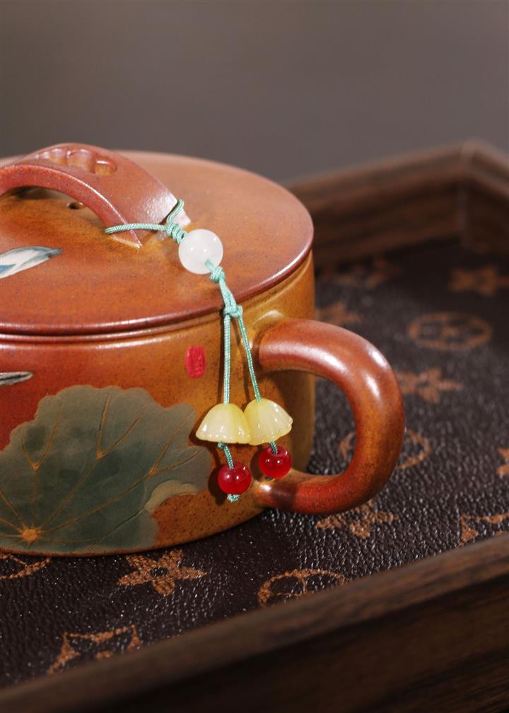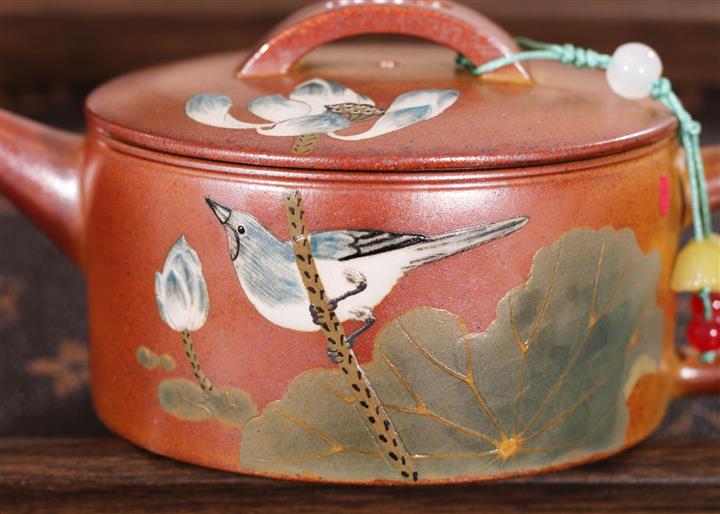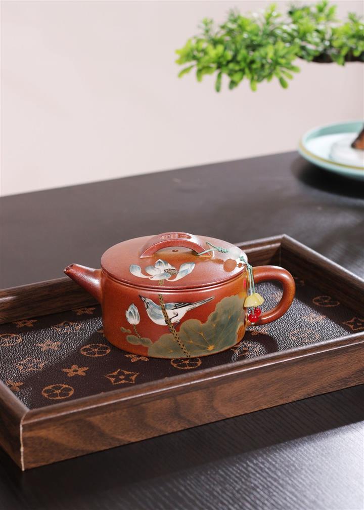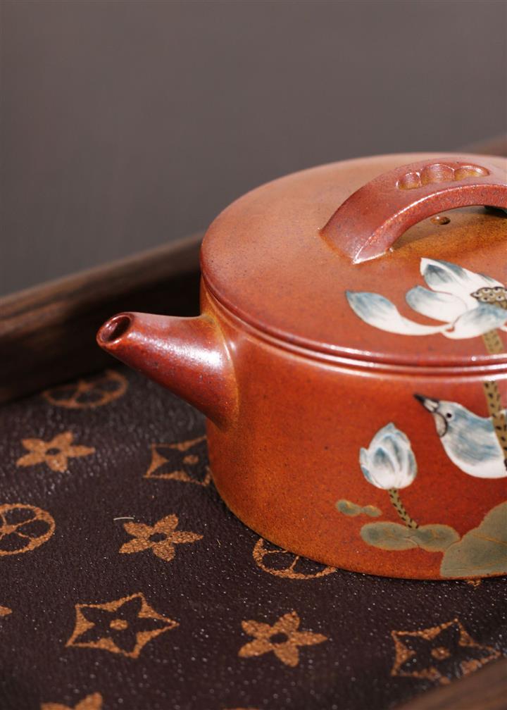 235cc原礦黃金段泥泥繪蓮蓬漢瓦茶壺POT8143