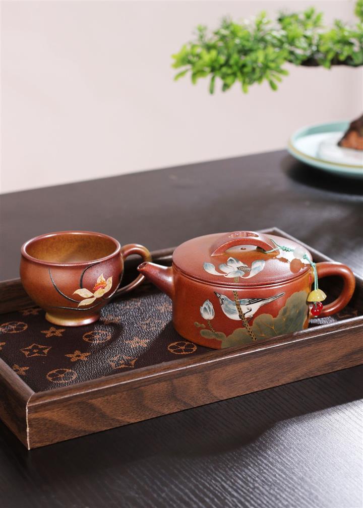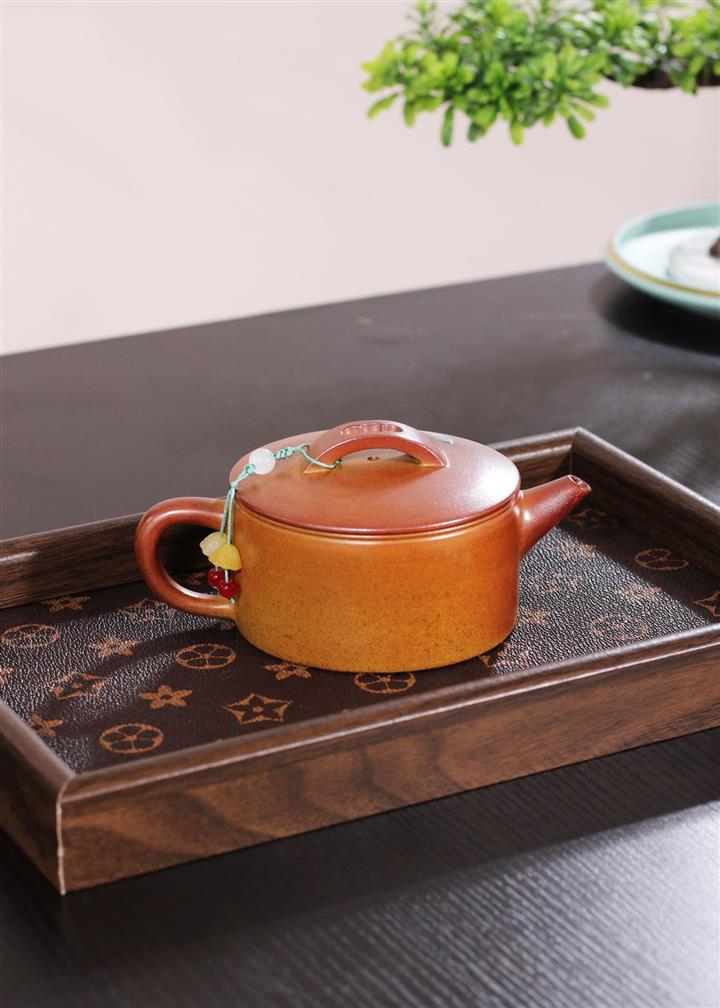 【泥料特點】砂土氣重,似淳實農民,日久使用,漸露鋒芒,養成變化,溫潤莊重。紫砂是壹種雙重氣孔結構的多孔性材質,氣孔微細,密度高。用紫砂壺沏茶,不失原味,且香不渙散,得茶之真香真味。紫砂使用越久,壺身色澤越發光亮照人,氣韻溫雅。紫砂壺長久使用器身會因撫摸擦拭,變得越發溫潤光澤。