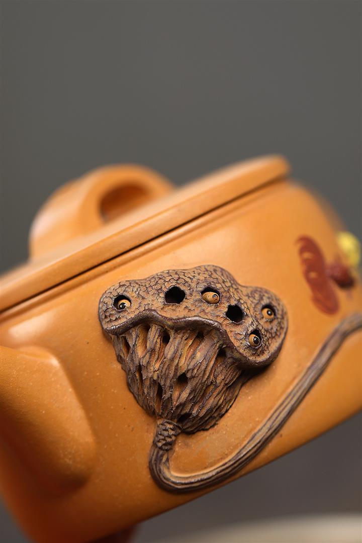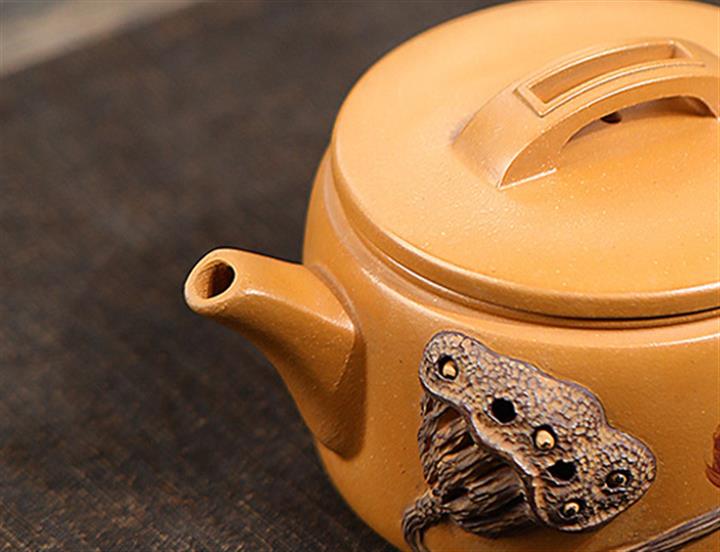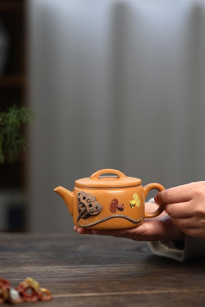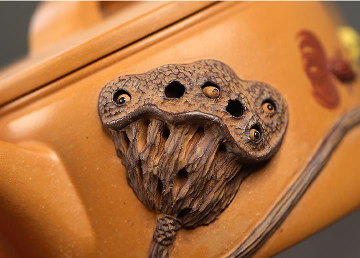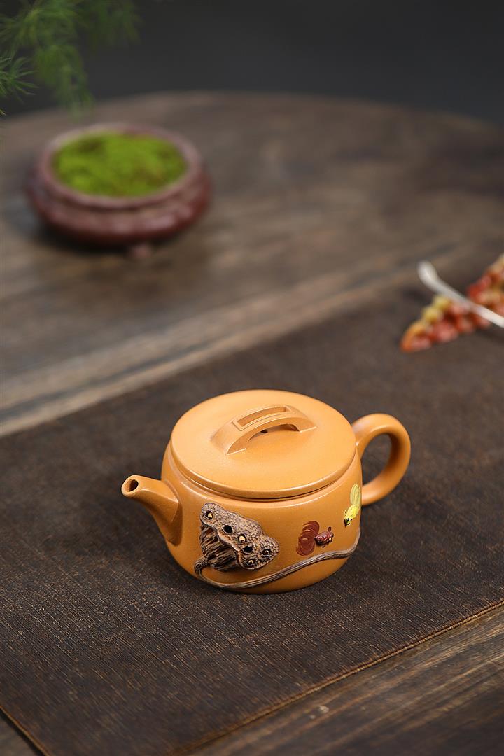235cc原礦黃金段泥泥繪蓮蓬漢瓦茶壺POT8143
