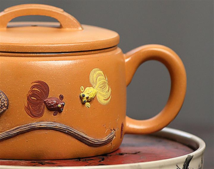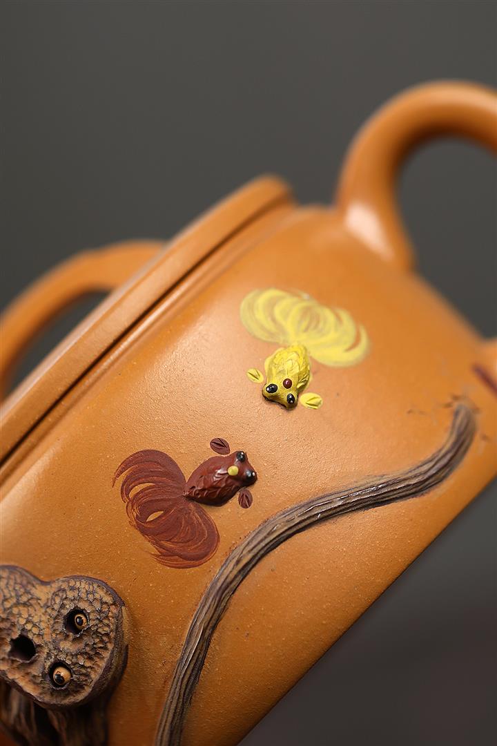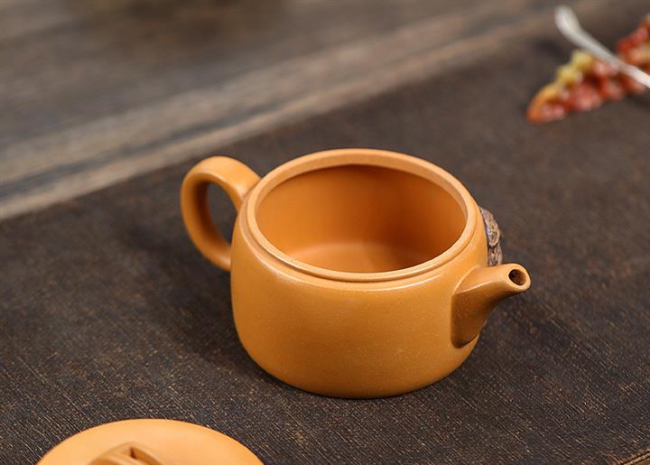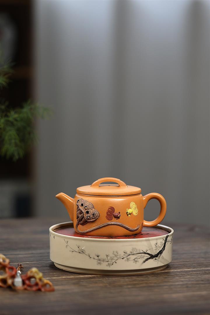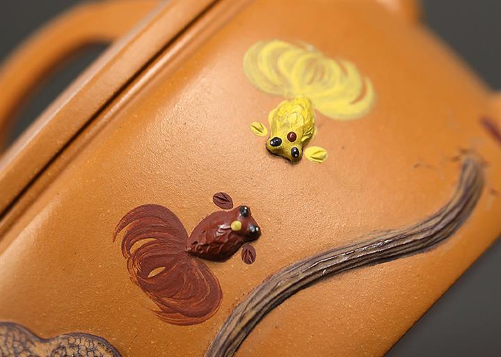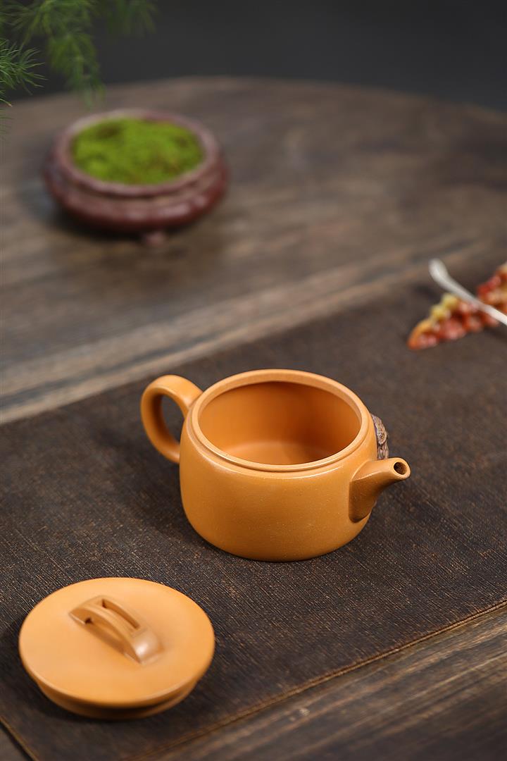 235cc原礦黃金段泥泥繪蓮蓬漢瓦茶壺POT8143