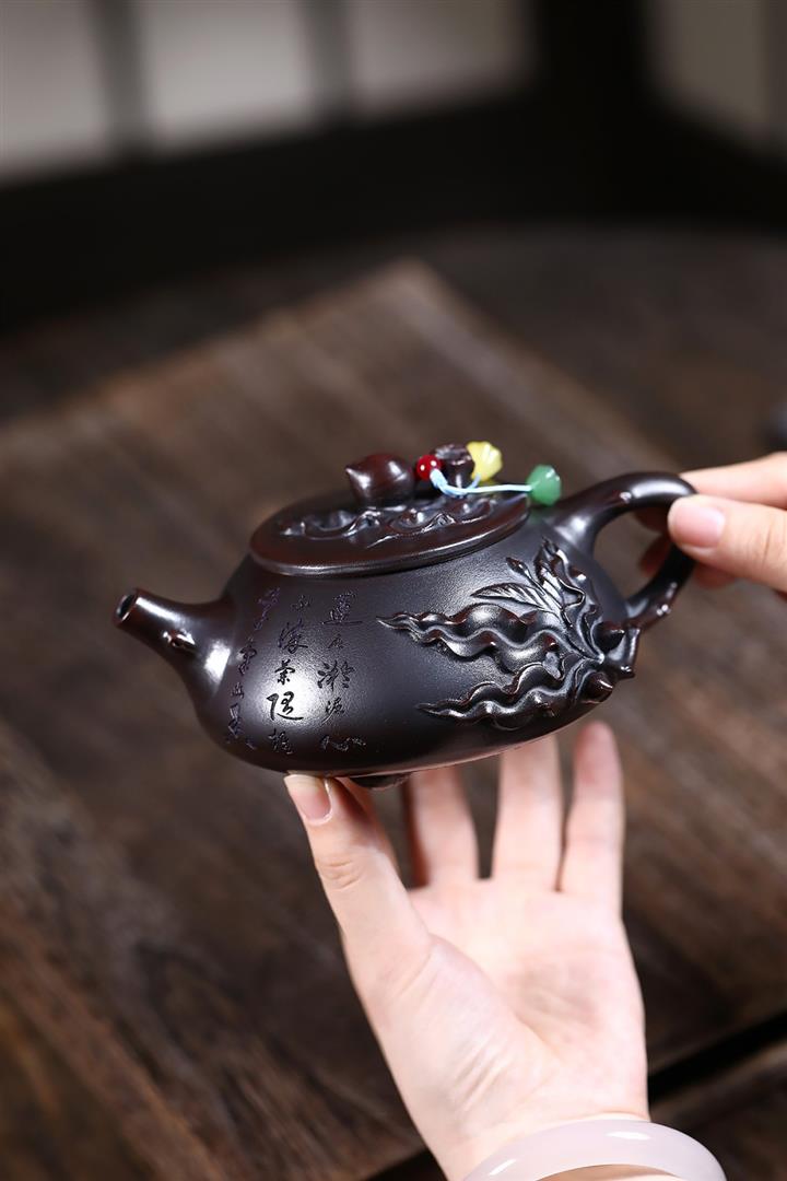 【作品介紹】此款壺形線條流暢,壺把,壺嘴,壺身壹氣呵成栩栩如生,是收藏把玩的好壺,泥料色澤古樸典雅,日久使用,漸露鋒芒,養成變化快,溫潤莊重,用其泡茶,使用的年代久,壺身就溫潤,泡出來的茶湯也就醇郁芳馨。