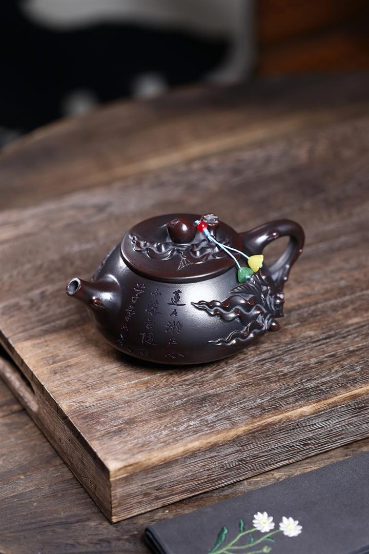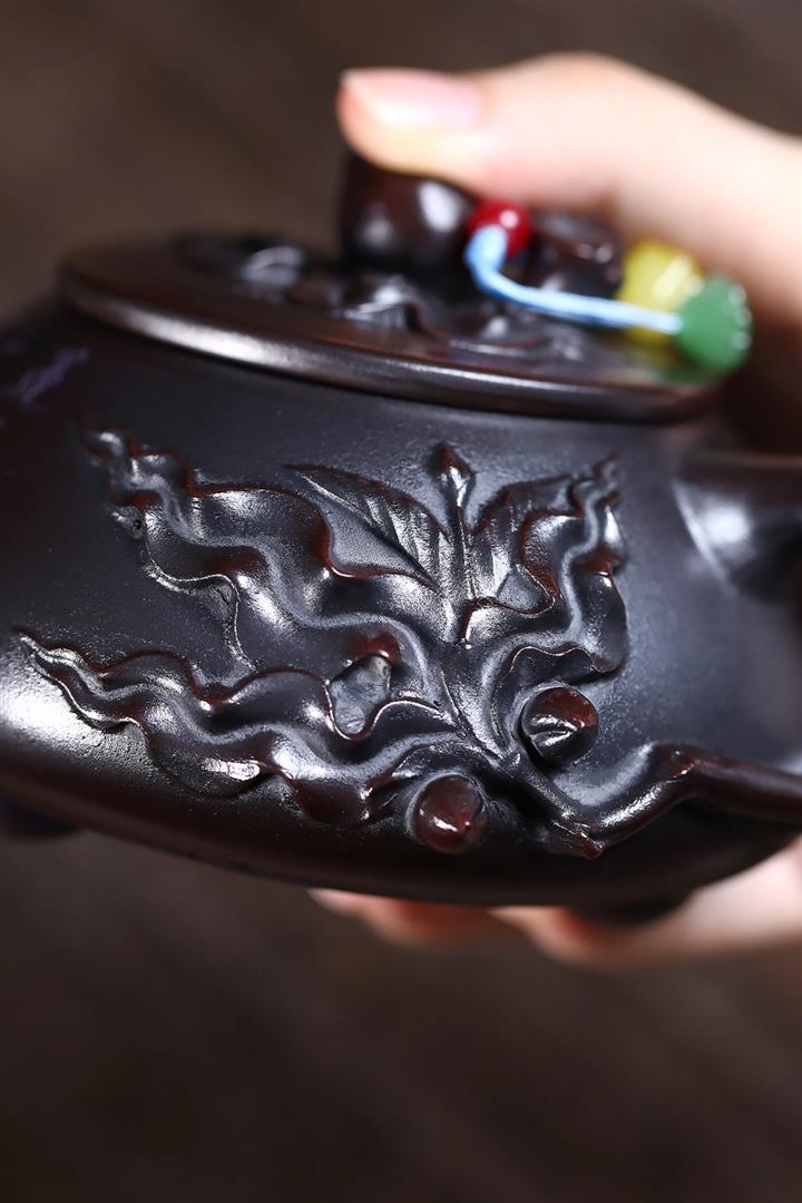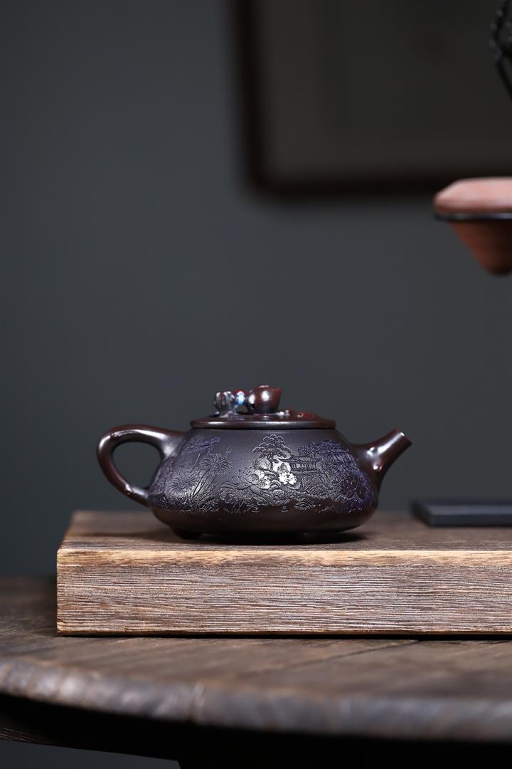 【泥料特點】砂土氣重,似淳實農民,日久使用,漸露鋒芒,養成變化,溫潤莊重。紫砂是壹種雙重氣孔結構的多孔性材質,氣孔微細,密度高。用紫砂壺沏茶,不失原味,且香不渙散,得茶之真香真味。紫砂使用越久,壺身色澤越發光亮照人,氣韻溫雅。紫砂壺長久使用器身會因撫摸擦拭,變得越發溫潤光澤。