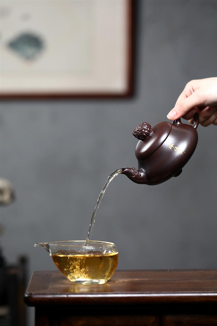 【泥料特點】砂土氣重,似淳實農民,日久使用,漸露鋒芒,養成變化,溫潤莊重。紫砂是壹種雙重氣孔結構的多孔性材質,氣孔微細,密度高。用紫砂壺沏茶,不失原味,且香不渙散,得茶之真香真味。紫砂使用越久,壺身色澤越發光亮照人,氣韻溫雅。紫砂壺長久使用器身會因撫摸擦拭,變得越發溫潤光澤。