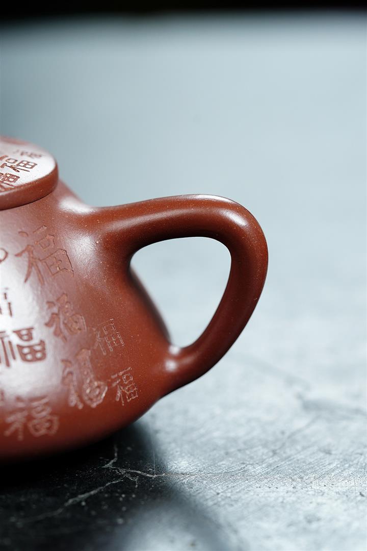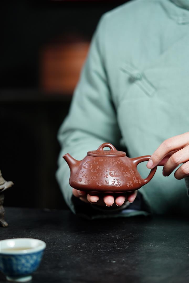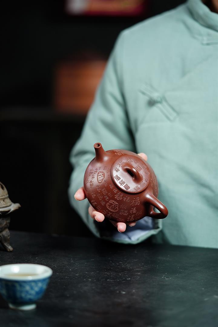 【泥料特點】砂土氣重,似淳實農民,日久使用,漸露鋒芒,養成變化,溫潤莊重。紫砂是壹種雙重氣孔結構的多孔性材質,氣孔微細,密度高。用紫砂壺沏茶,不失原味,且香不渙散,得茶之真香真味。紫砂使用越久,壺身色澤越發光亮照人,氣韻溫雅。紫砂壺長久使用器身會因撫摸擦拭,變得越發溫潤光澤。