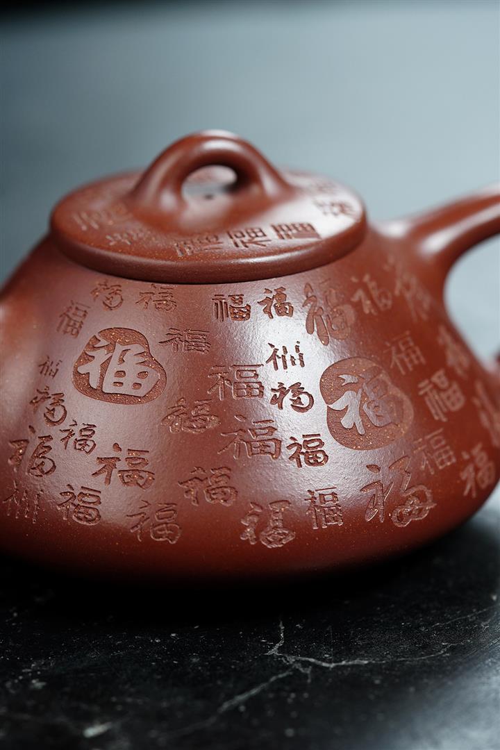890cc原礦優質紫泥滿刻雙鹿迎瑞壺POT8155