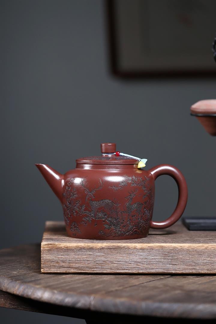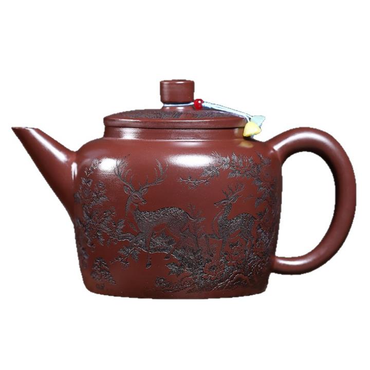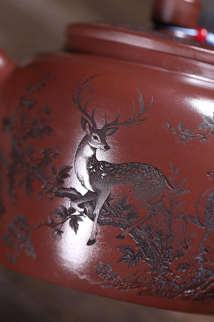 890cc原礦優質紫泥滿刻雙鹿迎瑞壺POT8155