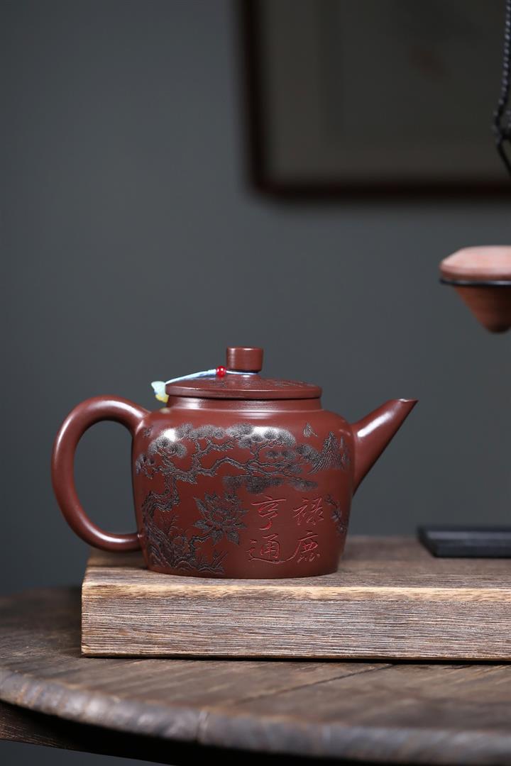 450cc原礦古烏泥滿刻淩雲問樵壺POT8157