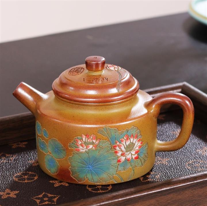 【泥料特點】砂土氣重,似淳實農民,日久使用,漸露鋒芒,養成變化,溫潤莊重。紫砂是壹種雙重氣孔結構的多孔性材質,氣孔微細,密度高。用紫砂壺沏茶,不失原味,且香不渙散,得茶之真香真味。紫砂使用越久,壺身色澤越發光亮照人,氣韻溫雅。紫砂壺長久使用器身會因撫摸擦拭,變得越發溫潤光澤。