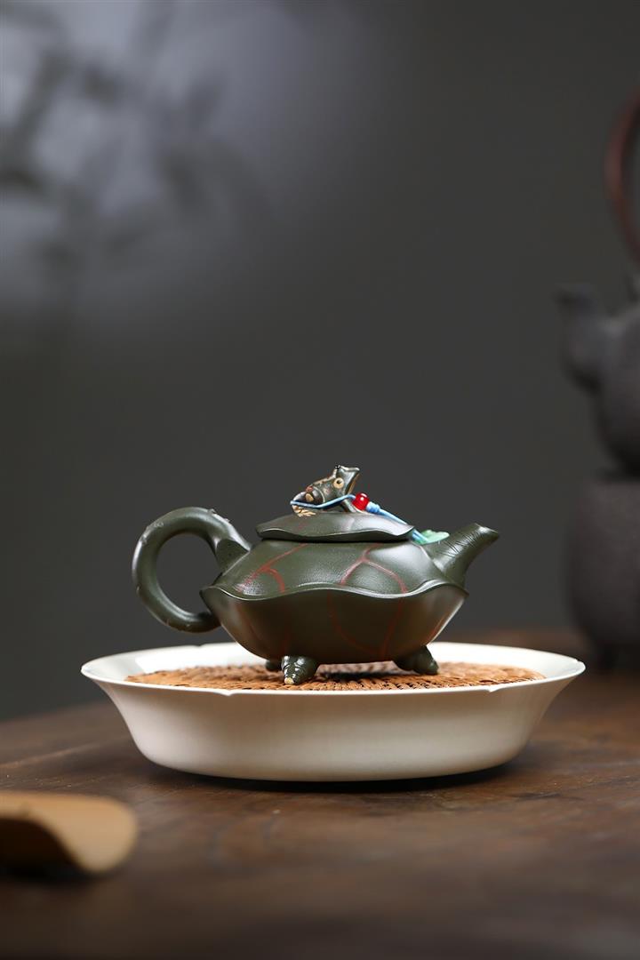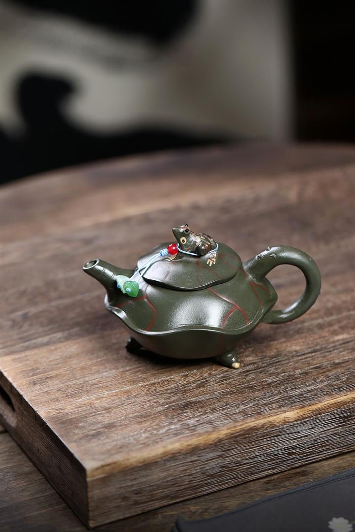 170cc原礦綠泥荷塘清趣仿生茶壺POT8158