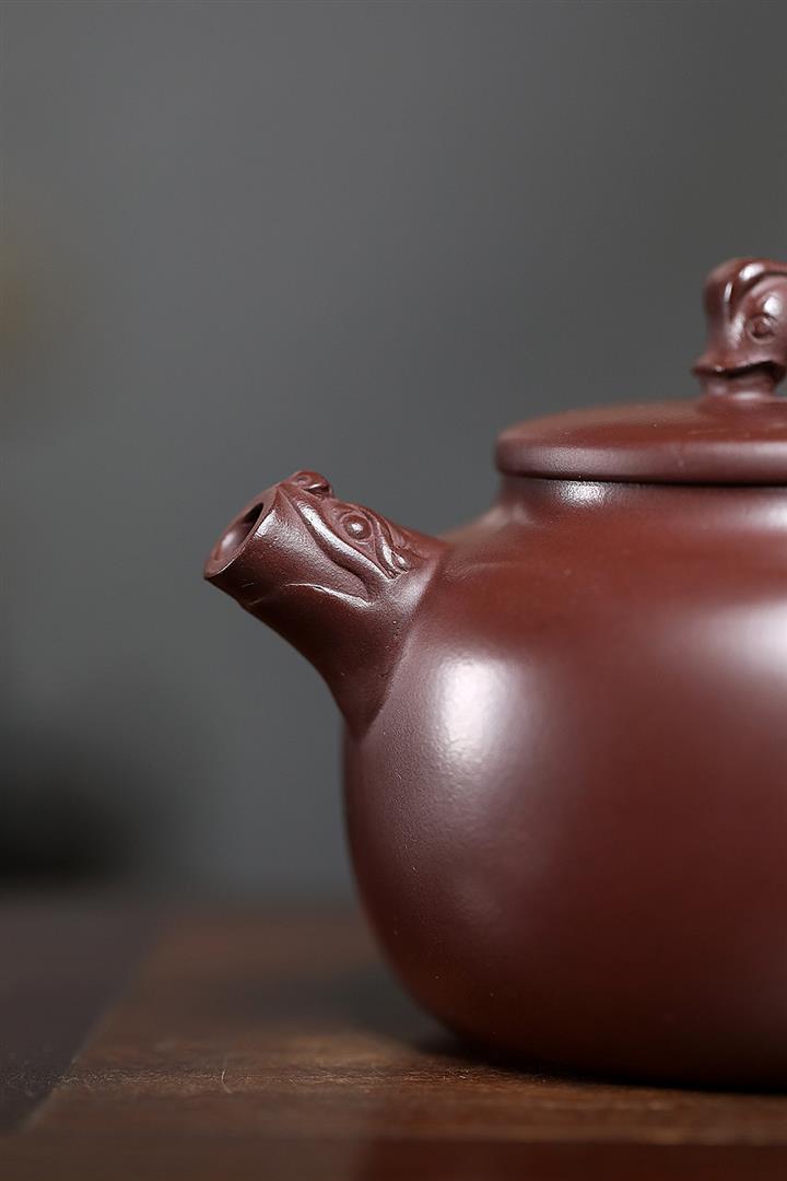 【作品介紹】此款壺形線條流暢,壺把,壺嘴,壺身壹氣呵成栩栩如生,是收藏把玩的好壺,泥料色澤古樸典雅,日久使用,漸露鋒芒,養成變化快,溫潤莊重,用其泡茶,使用的年代久,壺身就溫潤,泡出來的茶湯也就醇郁芳馨。