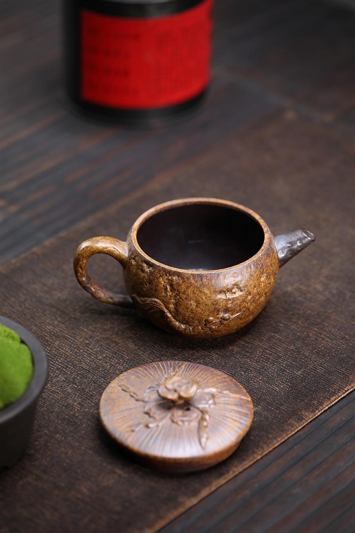 230cc原礦黑金砂松鶴延年漢瓦茶壺POT8170