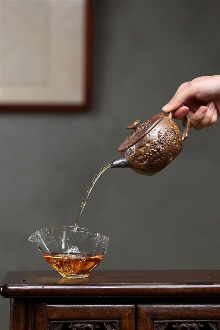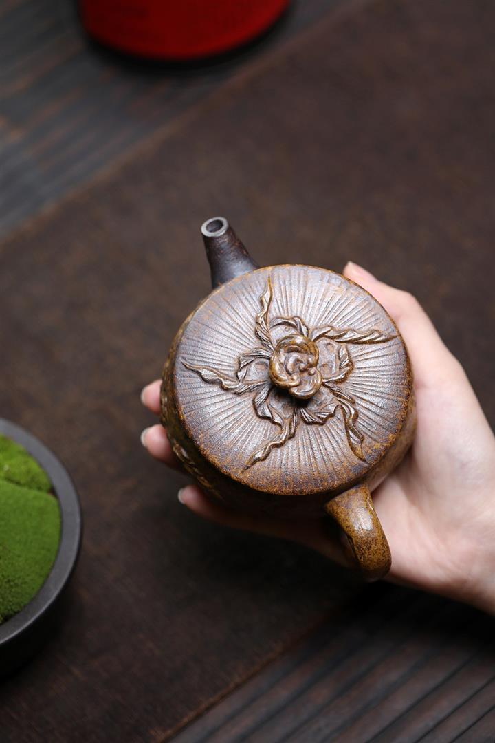 【泥料特點】砂土氣重,似淳實農民,日久使用,漸露鋒芒,養成變化,溫潤莊重。紫砂是壹種雙重氣孔結構的多孔性材質,氣孔微細,密度高。用紫砂壺沏茶,不失原味,且香不渙散,得茶之真香真味。紫砂使用越久,壺身色澤越發光亮照人,氣韻溫雅。紫砂壺長久使用器身會因撫摸擦拭,變得越發溫潤光澤。