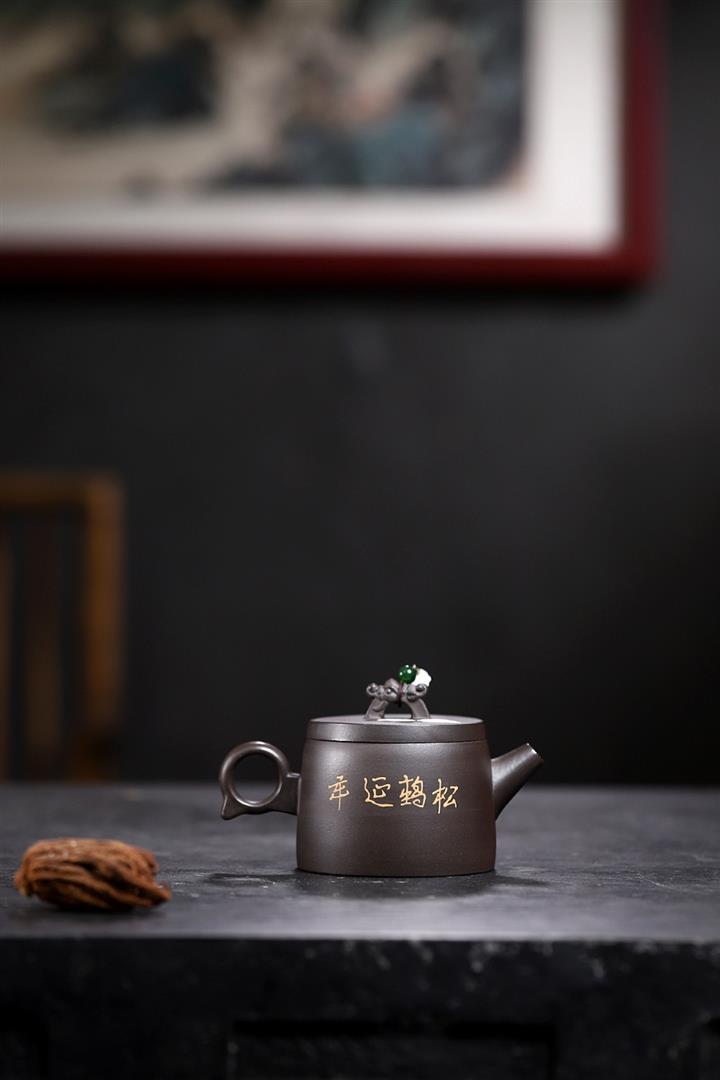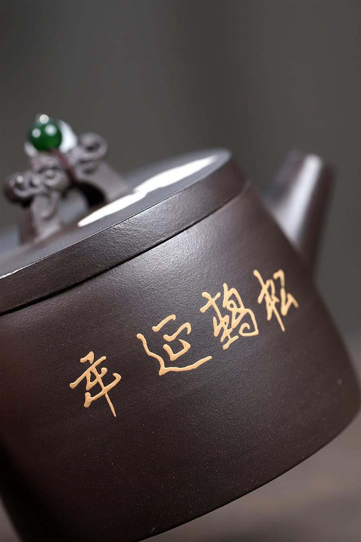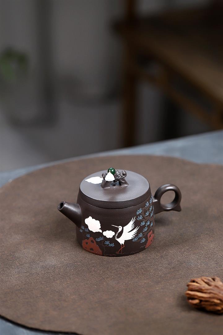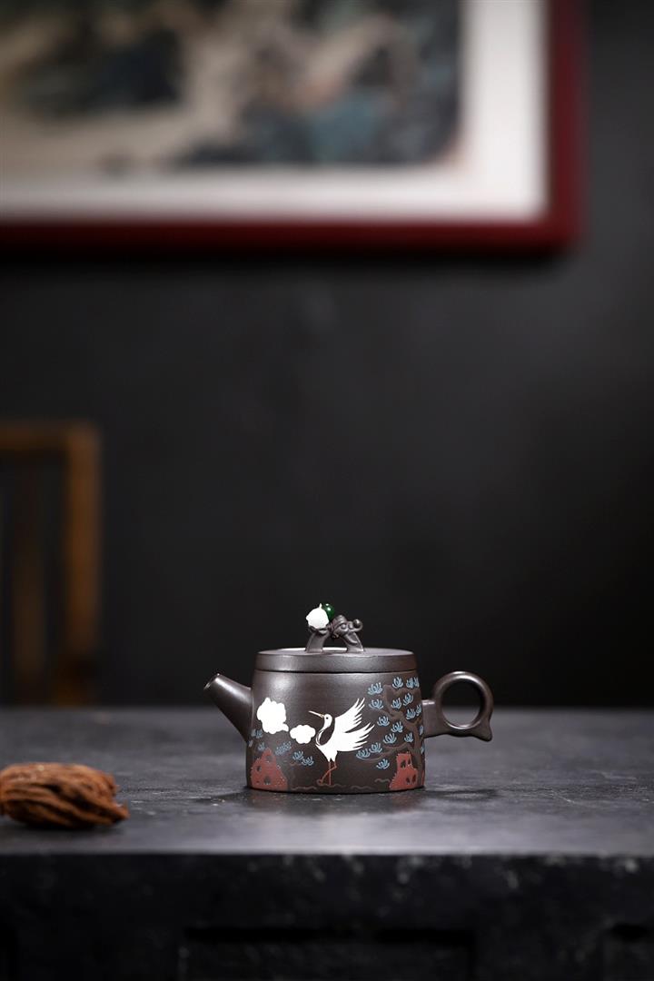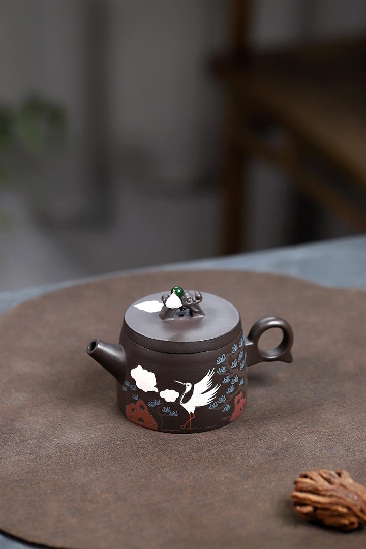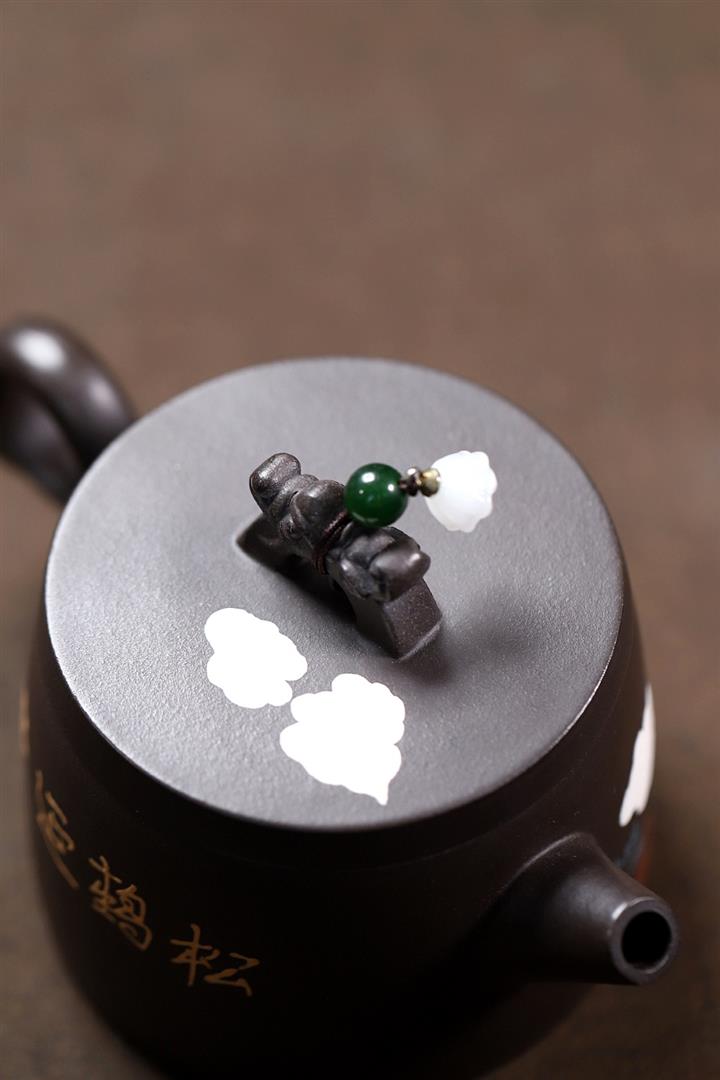 230cc原礦黑金砂松鶴延年漢瓦茶壺POT8170