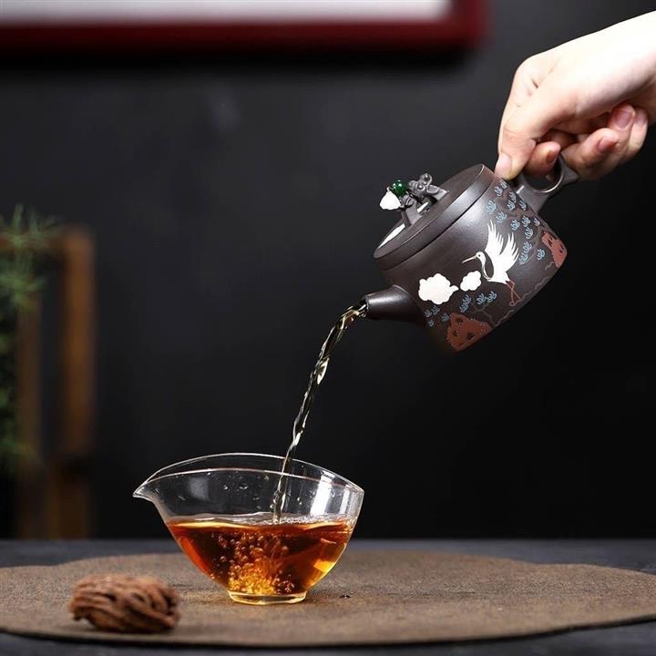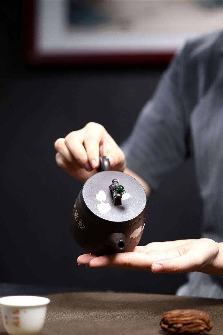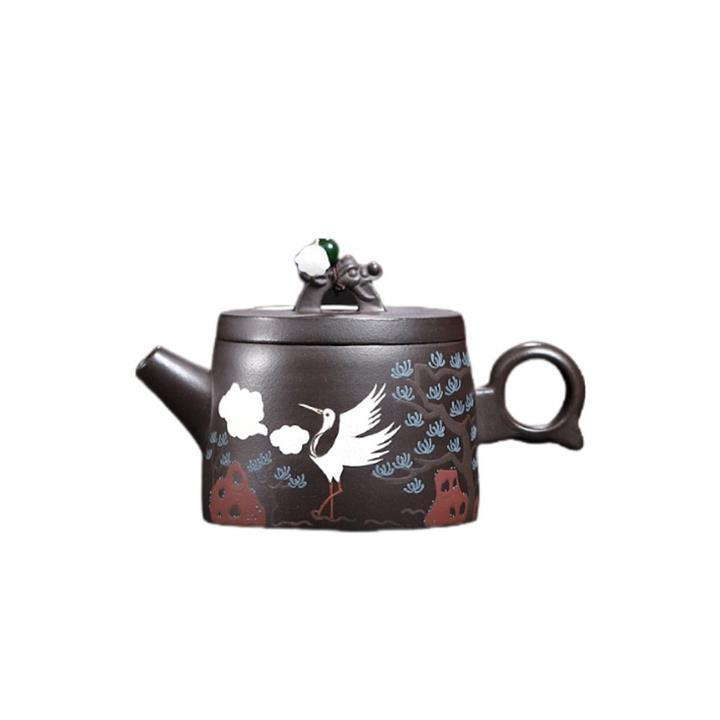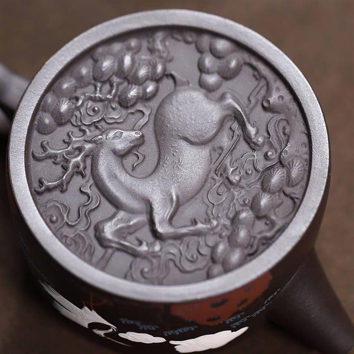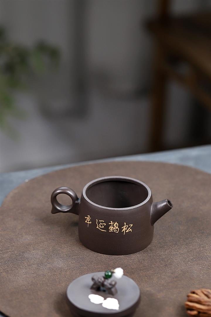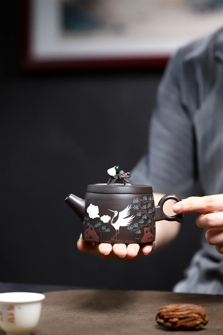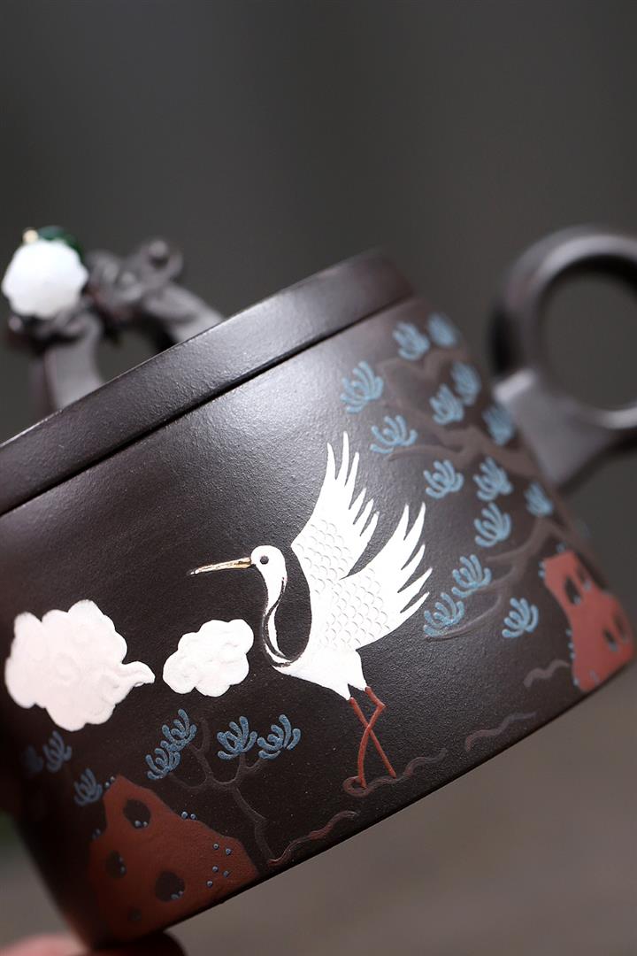 230cc原礦黑金砂松鶴延年漢瓦茶壺POT8170