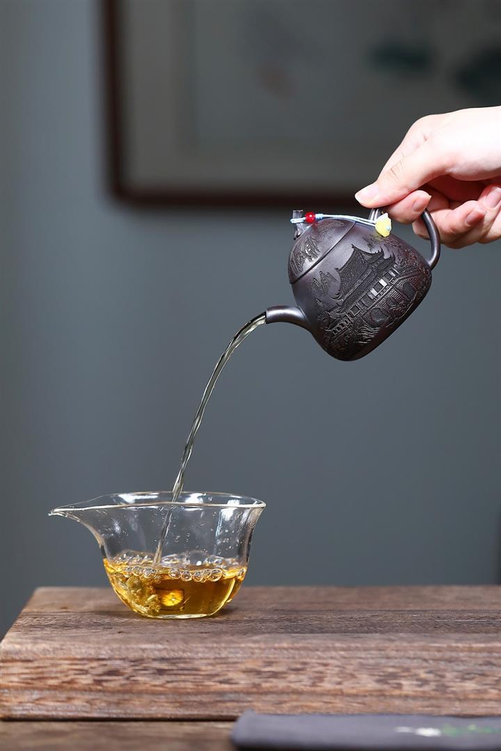 【泥料特點】砂土氣重,似淳實農民,日久使用,漸露鋒芒,養成變化,溫潤莊重。紫砂是壹種雙重氣孔結構的多孔性材質,氣孔微細,密度高。用紫砂壺沏茶,不失原味,且香不渙散,得茶之真香真味。紫砂使用越久,壺身色澤越發光亮照人,氣韻溫雅。紫砂壺長久使用器身會因撫摸擦拭,變得越發溫潤光澤。