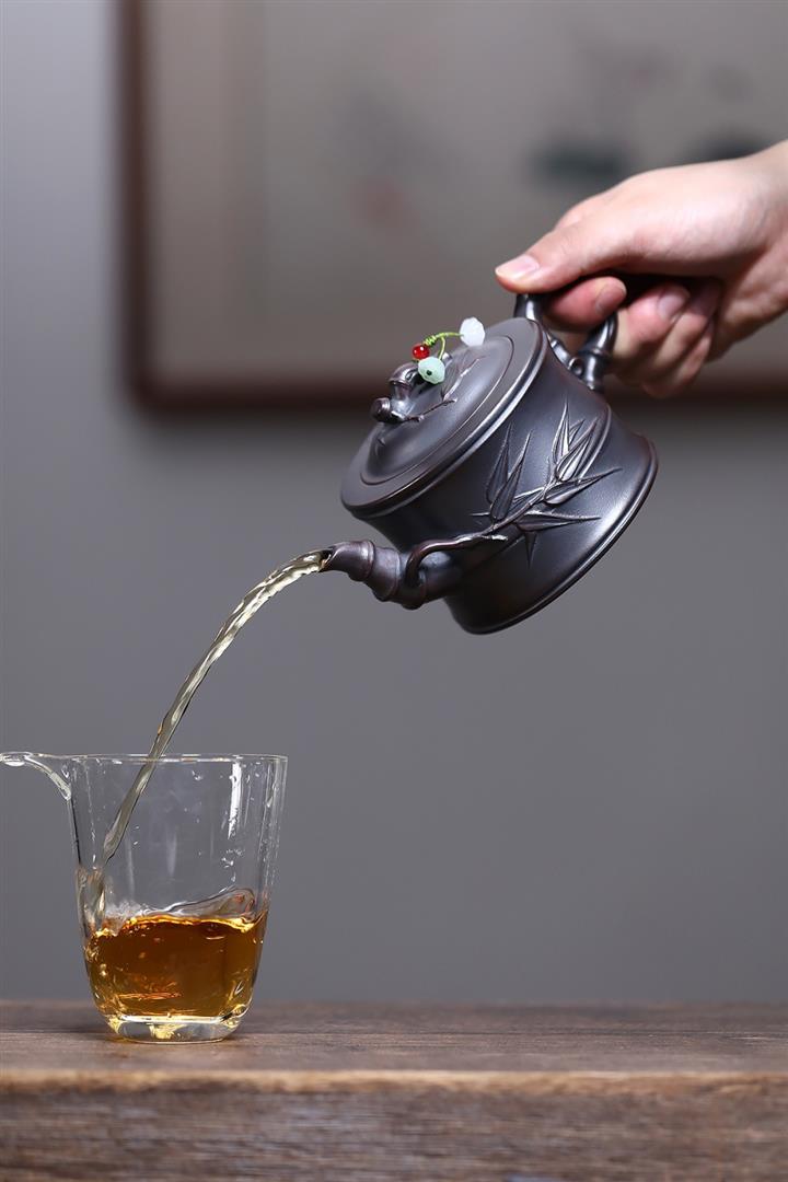 【泥料特點】砂土氣重,似淳實農民,日久使用,漸露鋒芒,養成變化,溫潤莊重。紫砂是壹種雙重氣孔結構的多孔性材質,氣孔微細,密度高。用紫砂壺沏茶,不失原味,且香不渙散,得茶之真香真味。紫砂使用越久,壺身色澤越發光亮照人,氣韻溫雅。紫砂壺長久使用器身會因撫摸擦拭,變得越發溫潤光澤。
