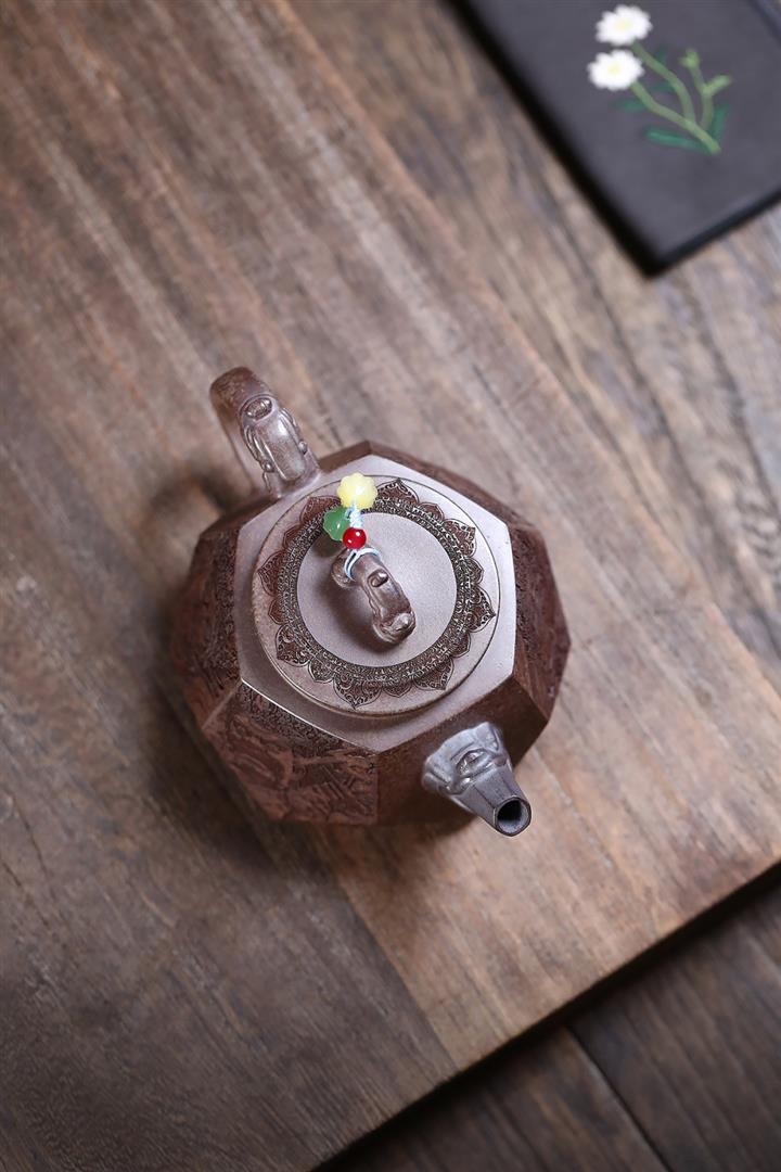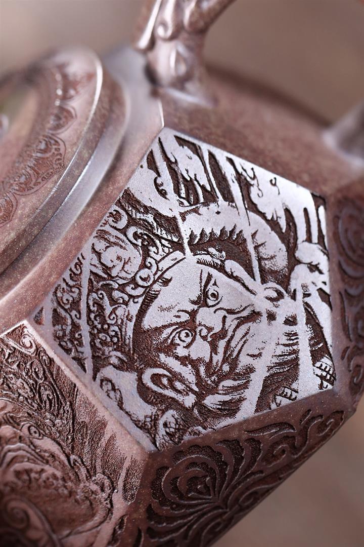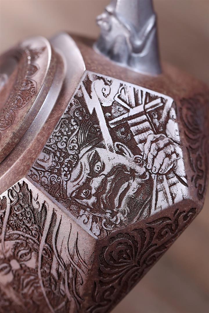 450cc原礦紫泥貝殼燒滿刻秦權茶壺POT8214