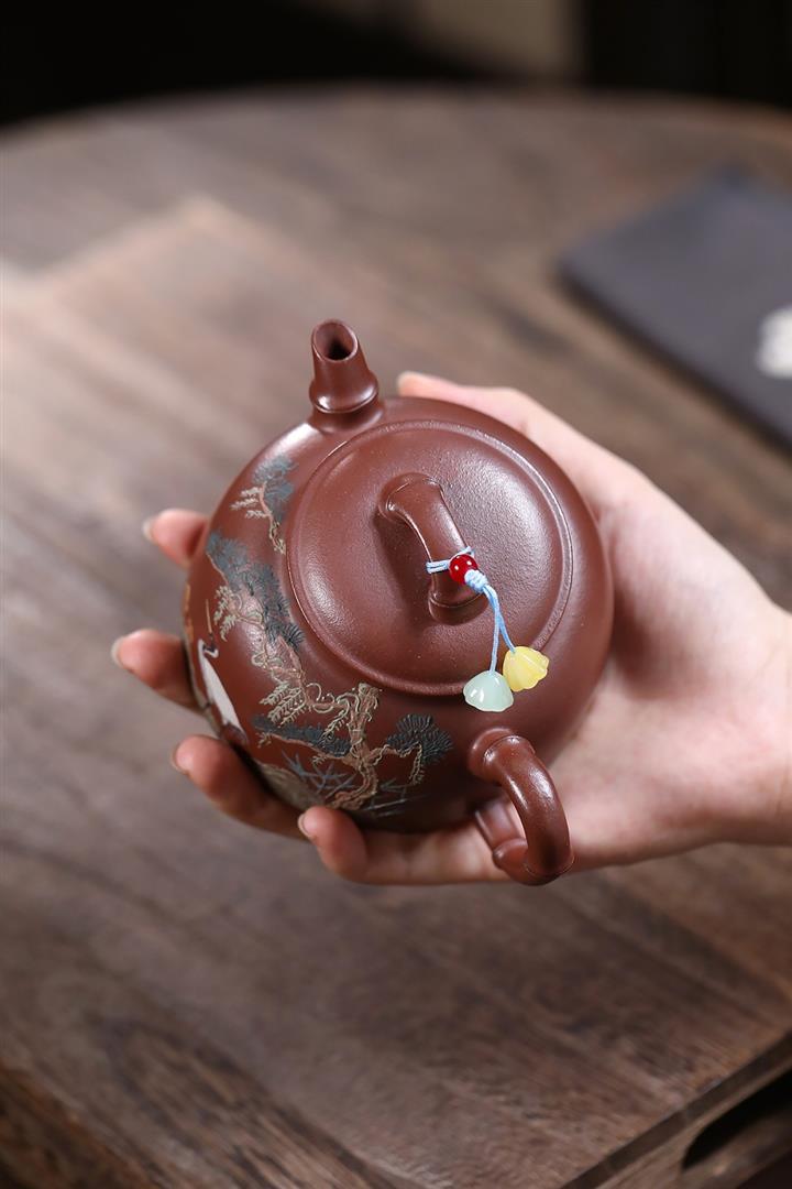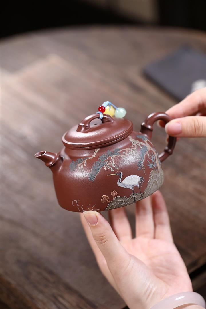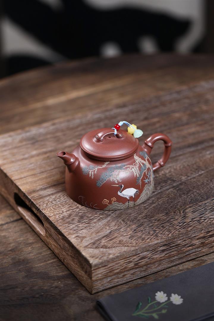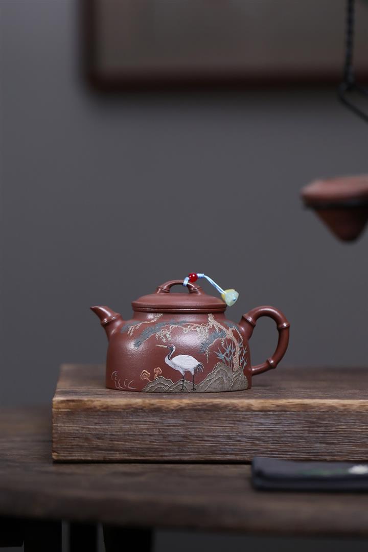 230cc原礦紫泥仙鶴延年茶壺POT8198