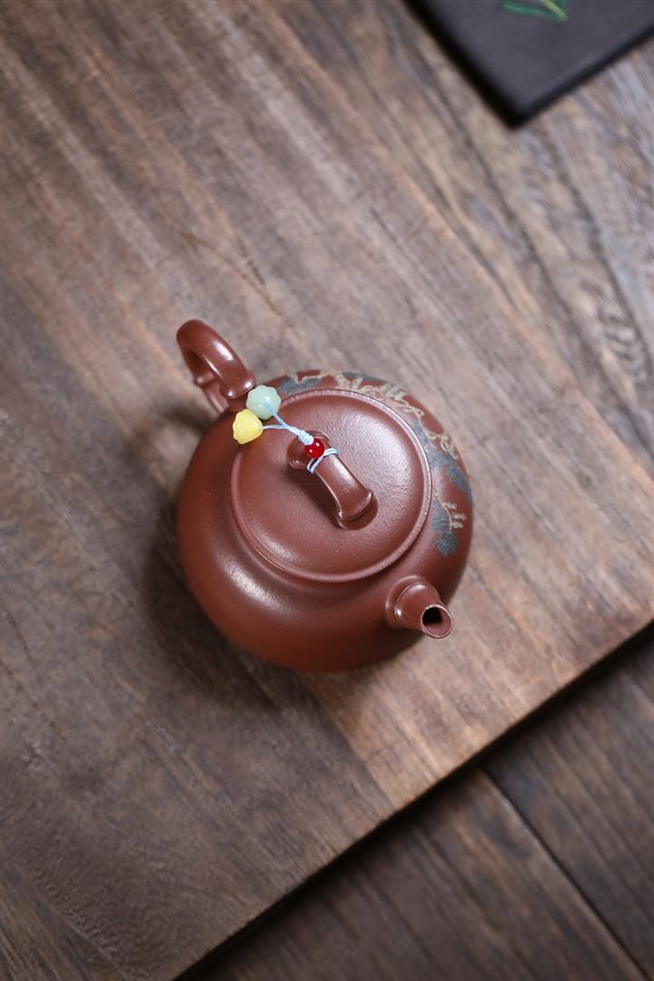 300cc原礦高溫段泥刻繪觀山虛扁茶壺POT8210