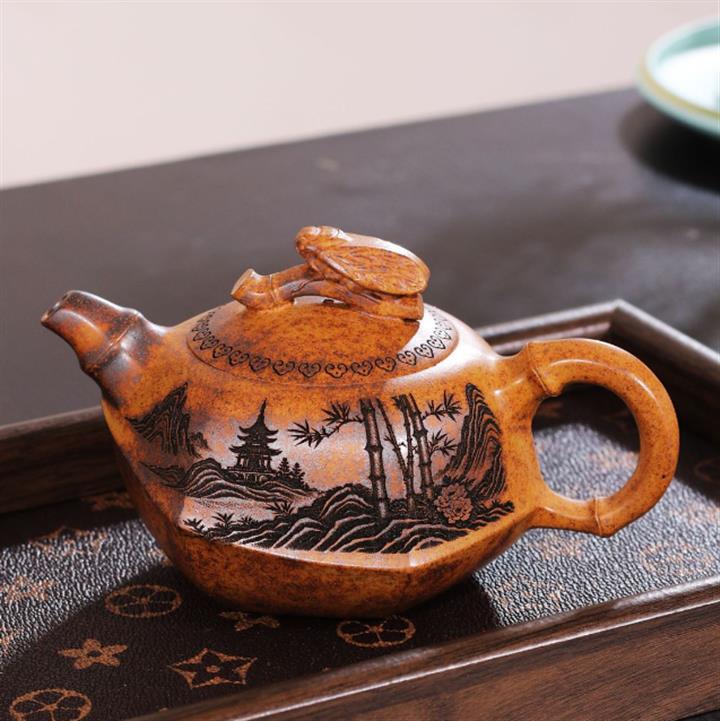 380cc段泥赤焰火雲燒滿刻秦權茶壺POT8202