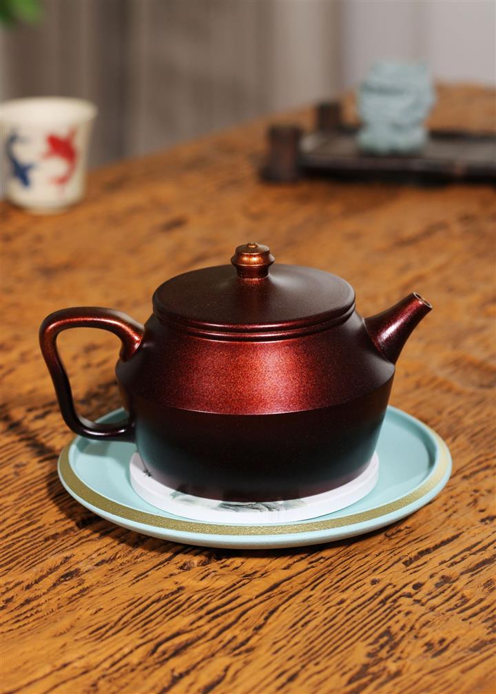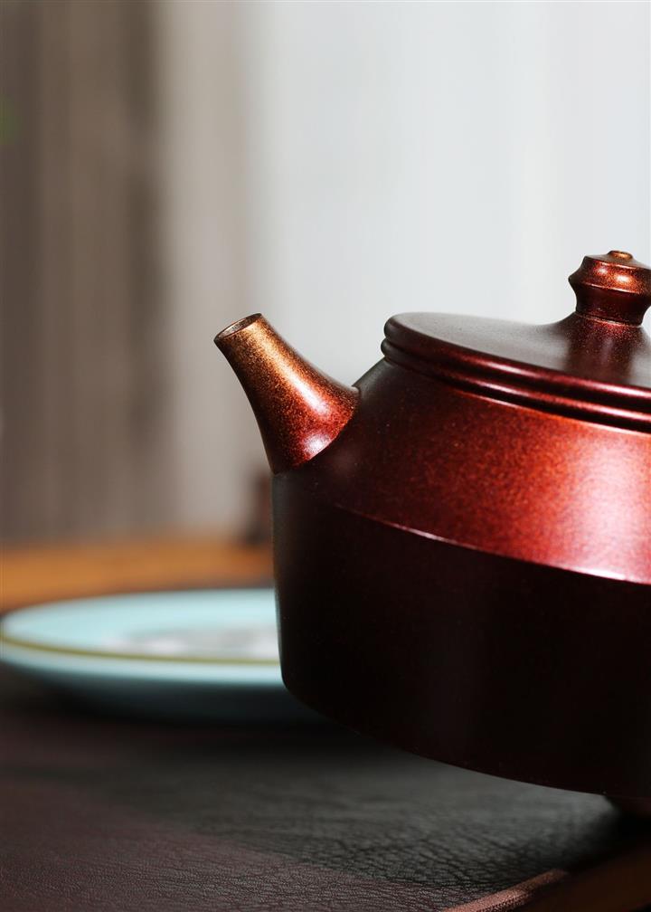 【泥料特點】砂土氣重,似淳實農民,日久使用,漸露鋒芒,養成變化,溫潤莊重。紫砂是壹種雙重氣孔結構的多孔性材質,氣孔微細,密度高。用紫砂壺沏茶,不失原味,且香不渙散,得茶之真香真味。紫砂使用越久,壺身色澤越發光亮照人,氣韻溫雅。紫砂壺長久使用器身會因撫摸擦拭,變得越發溫潤光澤。