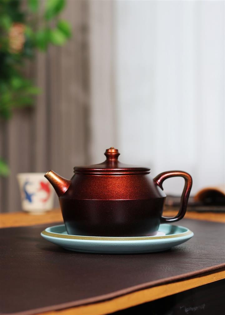 290cc龍骨金砂變色鳳鳴百福古秦權提梁壺POT8245