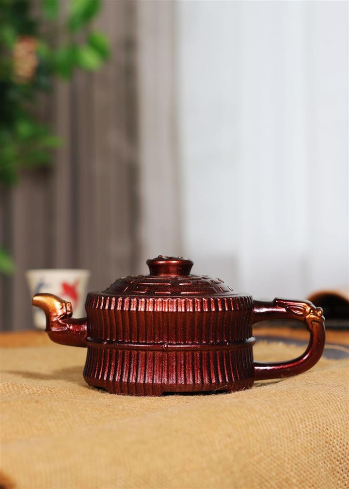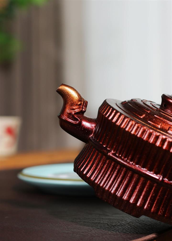 330cc古銅泥變色描金百福金鐘茶壺POT8244