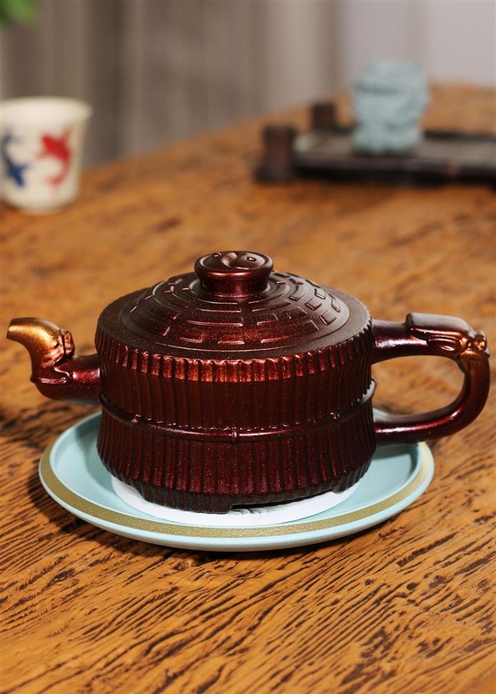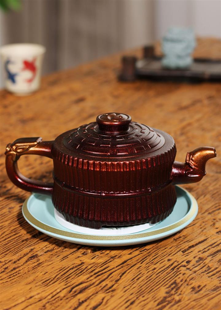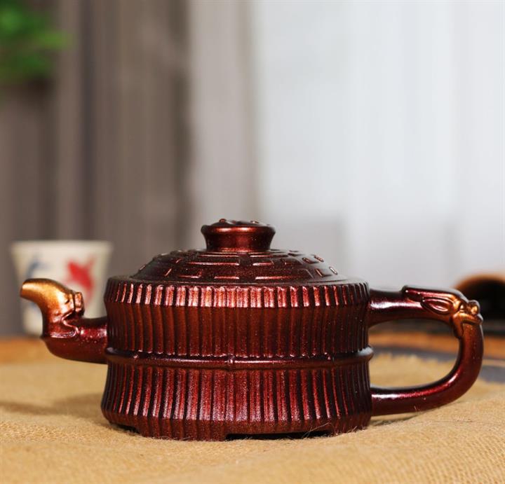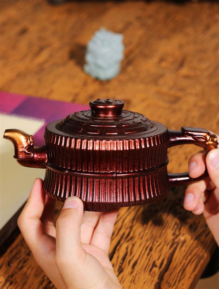 290cc龍骨金砂變色鳳鳴百福古秦權提梁壺POT8245