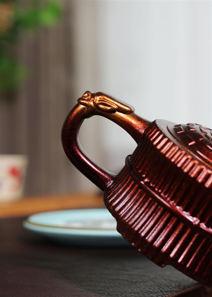210cc原礦石紅泥虎踞龍盤漢瓦茶壺POT8246