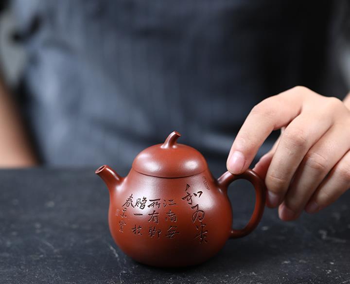 150cc原礦大紅袍焐灰灑金寒江茶壺POT8219