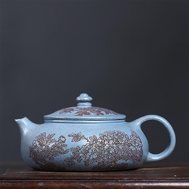 180cc原礦寶藍段泥刻繪牡丹茶壺POT8229