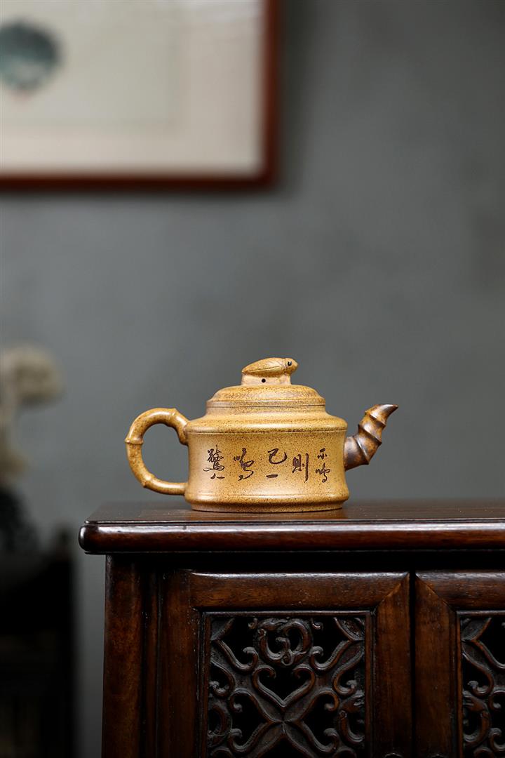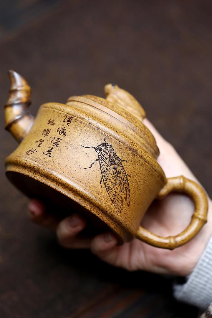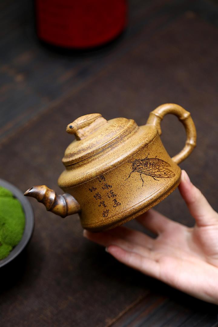 【作品介紹】此款壺形線條流暢,壺把,壺嘴,壺身壹氣呵成栩栩如生,是收藏把玩的好壺,泥料色澤古樸典雅,日久使用,漸露鋒芒,養成變化快,溫潤莊重,用其泡茶,使用的年代久,壺身就溫潤,泡出來的茶湯也就醇郁芳馨。
