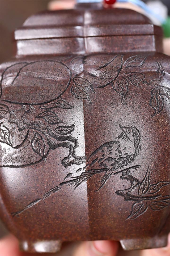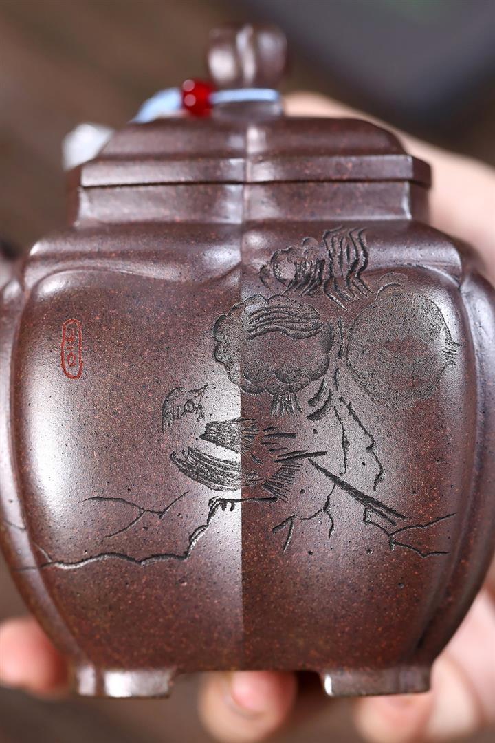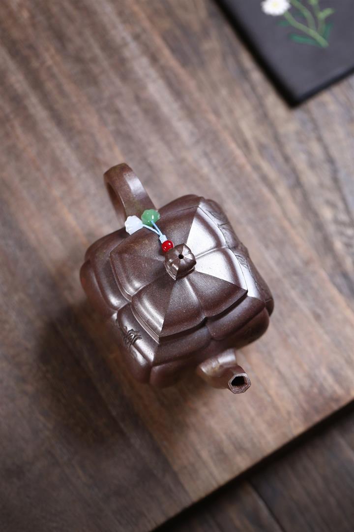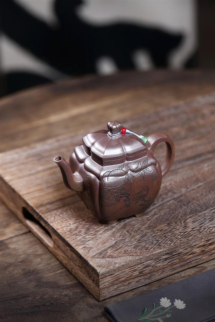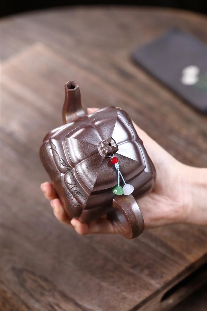 360cc原礦柴燒沈香泥方器筋紋秋菱茶壺POT8226