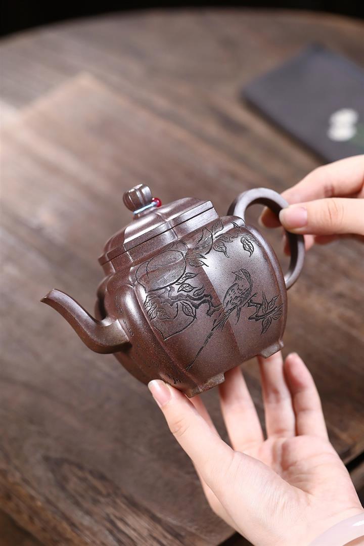 【作品介紹】此款壺形線條流暢,壺把,壺嘴,壺身壹氣呵成栩栩如生,是收藏把玩的好壺,泥料色澤古樸典雅,日久使用,漸露鋒芒,養成變化快,溫潤莊重,用其泡茶,使用的年代久,壺身就溫潤,泡出來的茶湯也就醇郁芳馨。