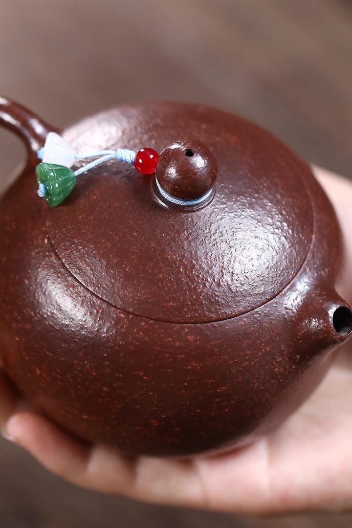【泥料特點】砂土氣重,似淳實農民,日久使用,漸露鋒芒,養成變化,溫潤莊重。紫砂是壹種雙重氣孔結構的多孔性材質,氣孔微細,密度高。用紫砂壺沏茶,不失原味,且香不渙散,得茶之真香真味。紫砂使用越久,壺身色澤越發光亮照人,氣韻溫雅。紫砂壺長久使用器身會因撫摸擦拭,變得越發溫潤光澤。