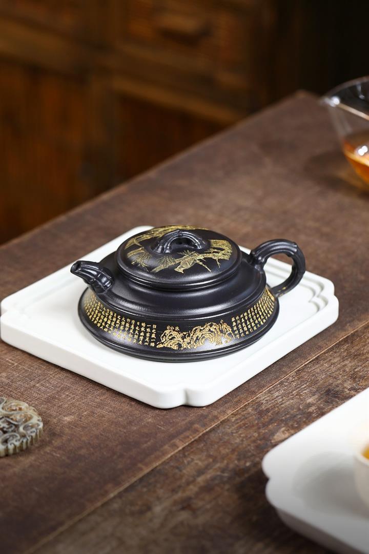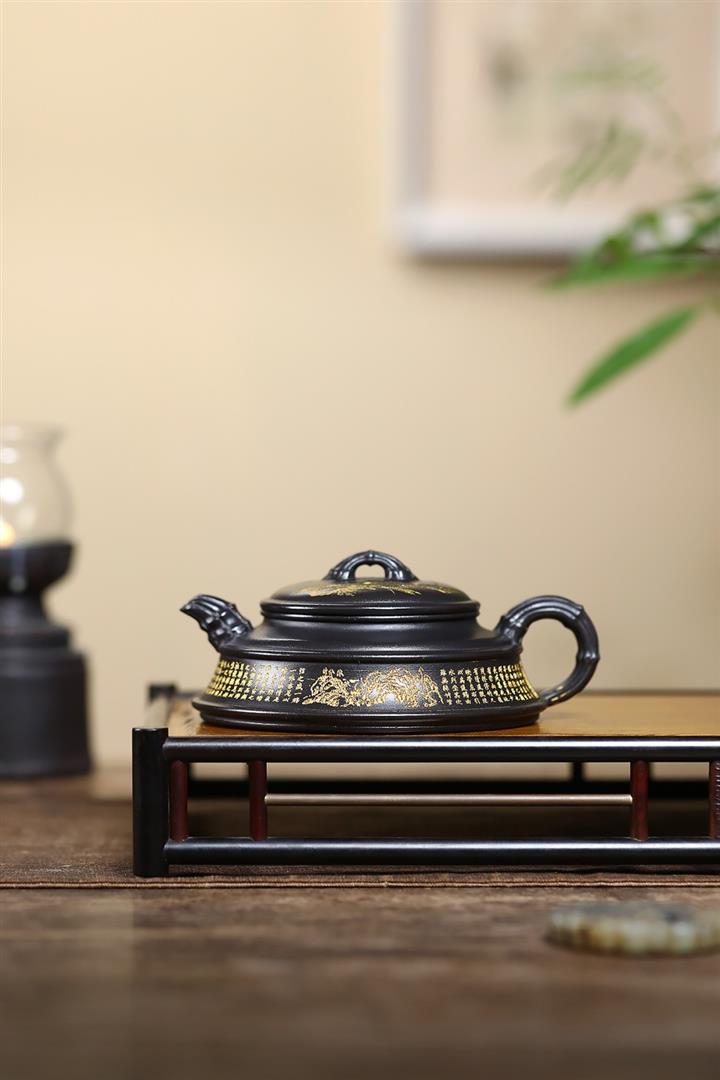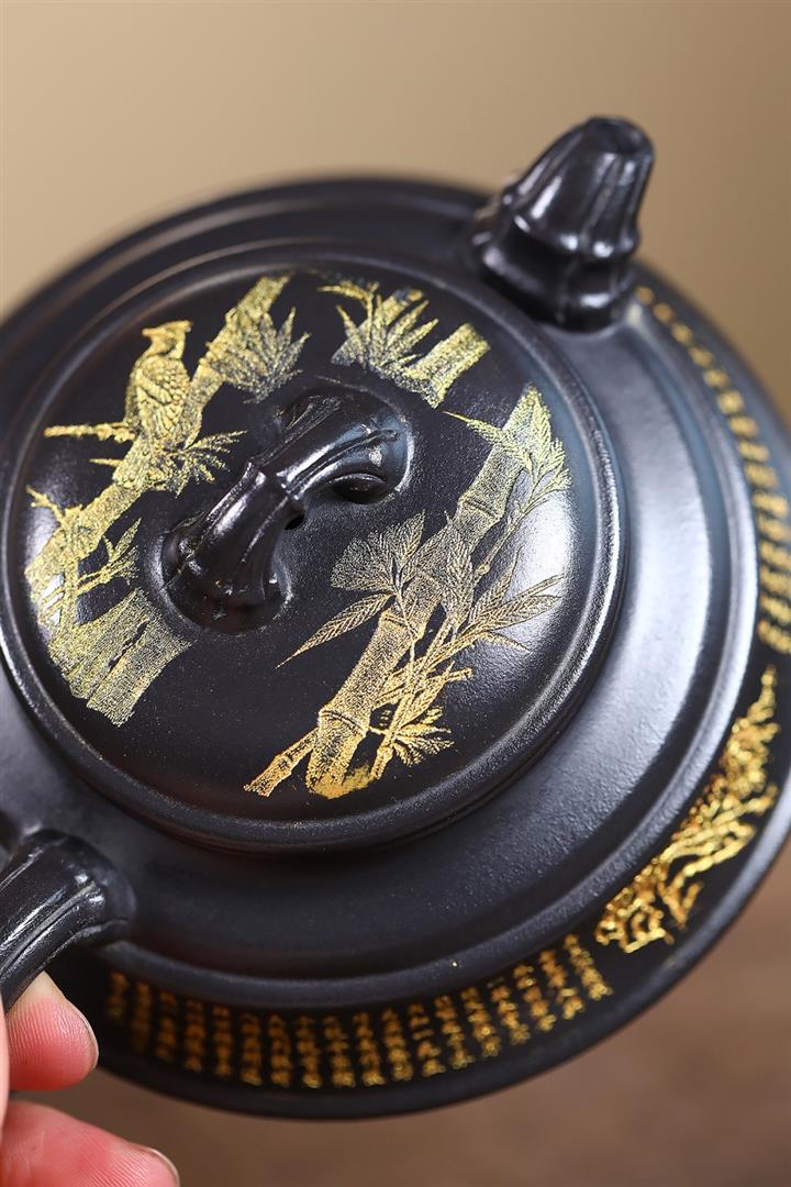 300cc原礦石黃泥金篆竹韻瓦當壺POT8249