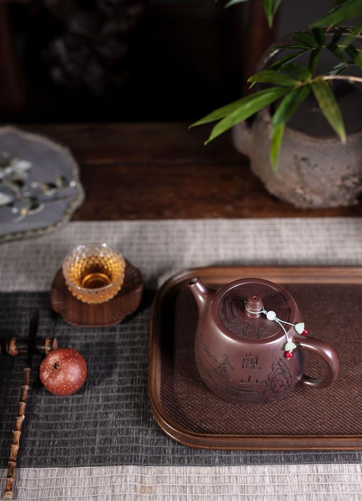 【泥料特點】砂土氣重,似淳實農民,日久使用,漸露鋒芒,養成變化,溫潤莊重。紫砂是壹種雙重氣孔結構的多孔性材質,氣孔微細,密度高。用紫砂壺沏茶,不失原味,且香不渙散,得茶之真香真味。紫砂使用越久,壺身色澤越發光亮照人,氣韻溫雅。紫砂壺長久使用器身會因撫摸擦拭,變得越發溫潤光澤。
