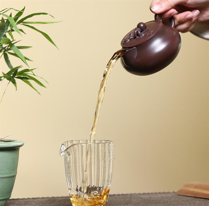【泥料特點】砂土氣重,似淳實農民,日久使用,漸露鋒芒,養成變化,溫潤莊重。紫砂是壹種雙重氣孔結構的多孔性材質,氣孔微細,密度高。用紫砂壺沏茶,不失原味,且香不渙散,得茶之真香真味。紫砂使用越久,壺身色澤越發光亮照人,氣韻溫雅。紫砂壺長久使用器身會因撫摸擦拭,變得越發溫潤光澤。