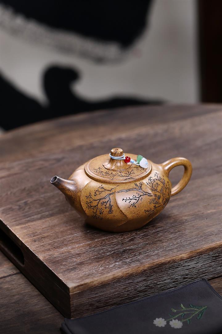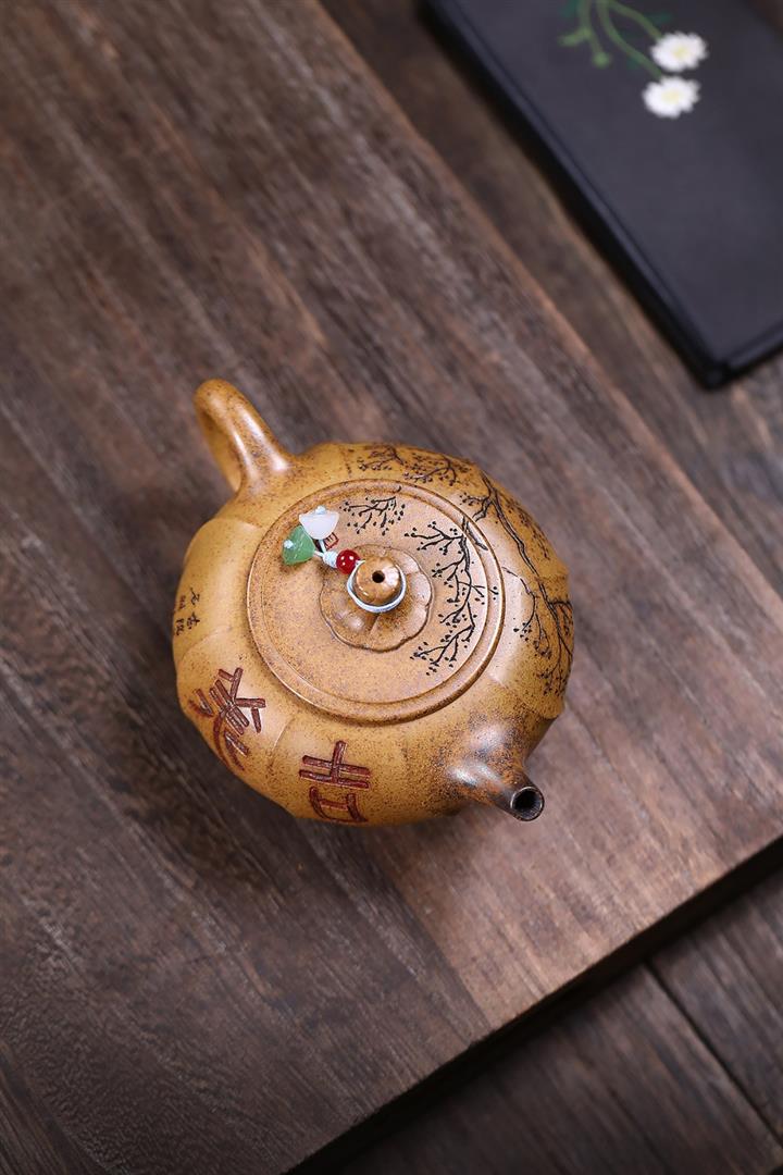 350cc原礦玄鐵石黃笑櫻茶壺POT8296
