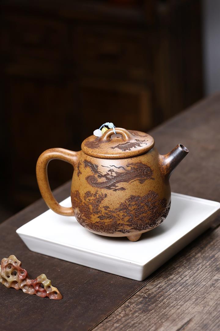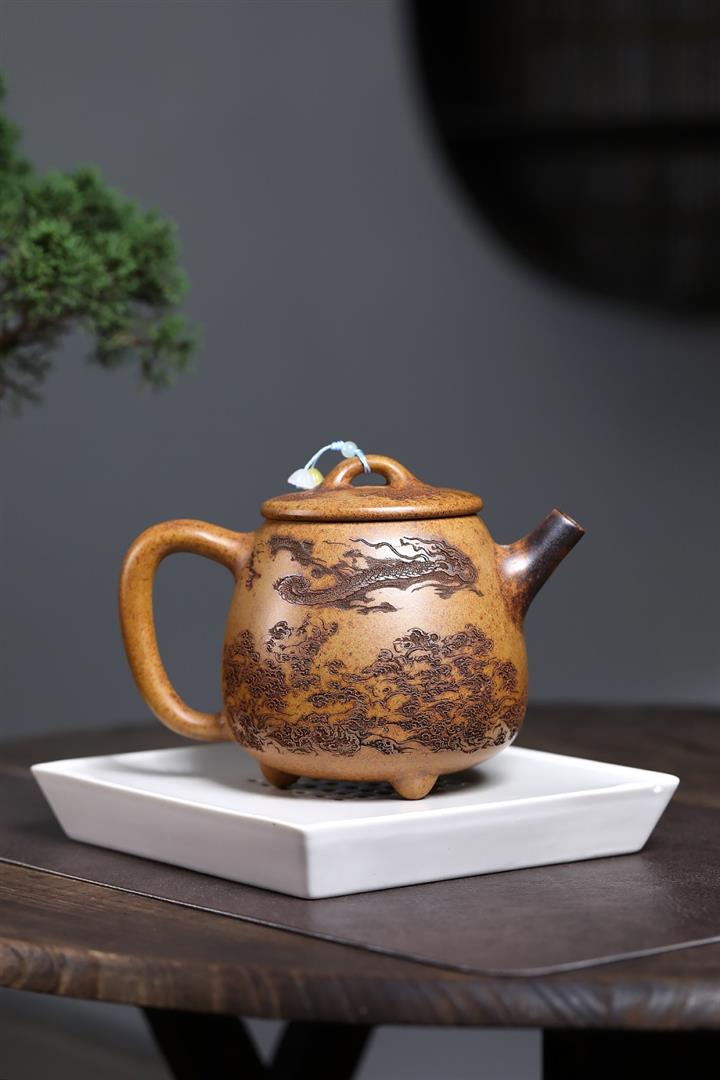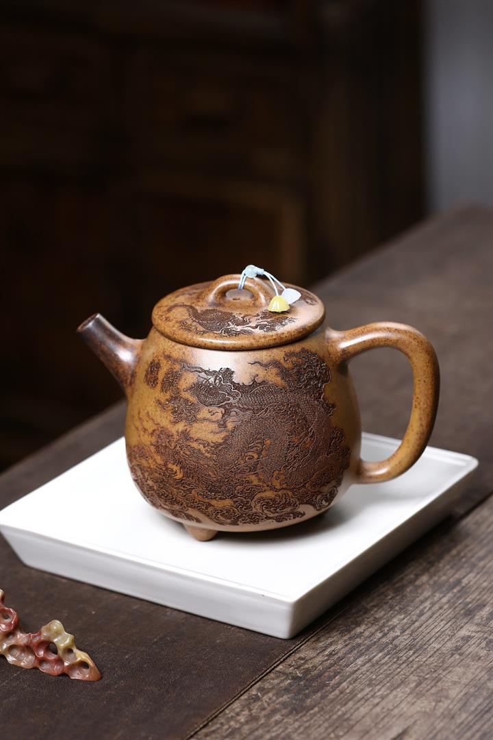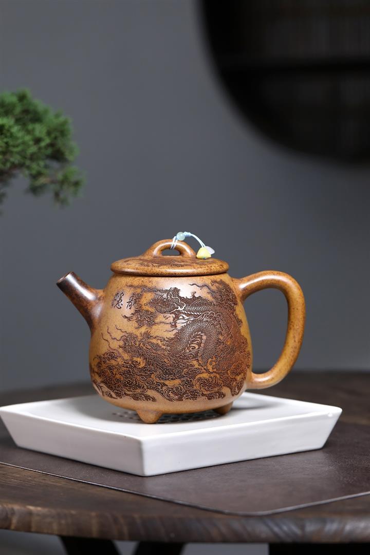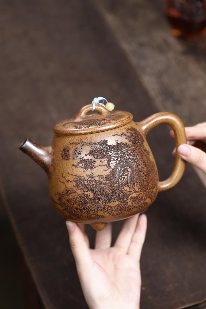 【作品介紹】此款壺形線條流暢,壺把,壺嘴,壺身壹氣呵成栩栩如生,是收藏把玩的好壺,泥料色澤古樸典雅,日久使用,漸露鋒芒,養成變化快,溫潤莊重,用其泡茶,使用的年代久,壺身就溫潤,泡出來的茶湯也就醇郁芳馨。