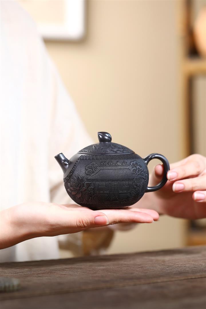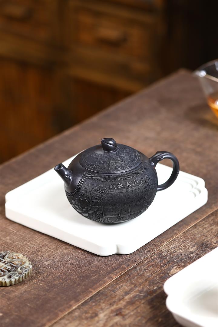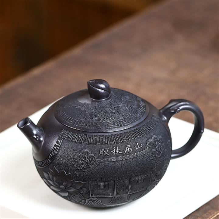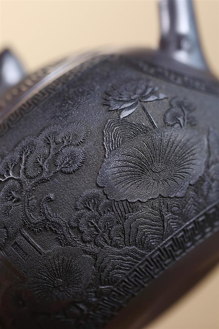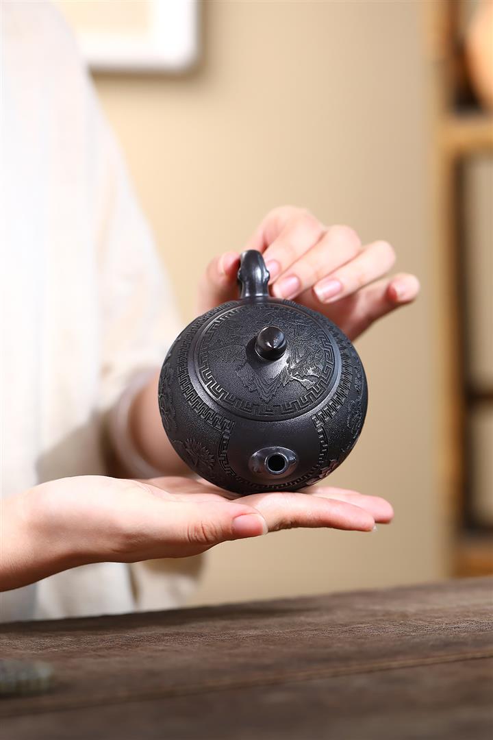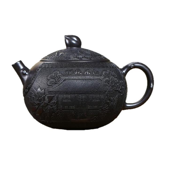 450cc原礦紫泥滿刻大德鐘茶壺POT8290