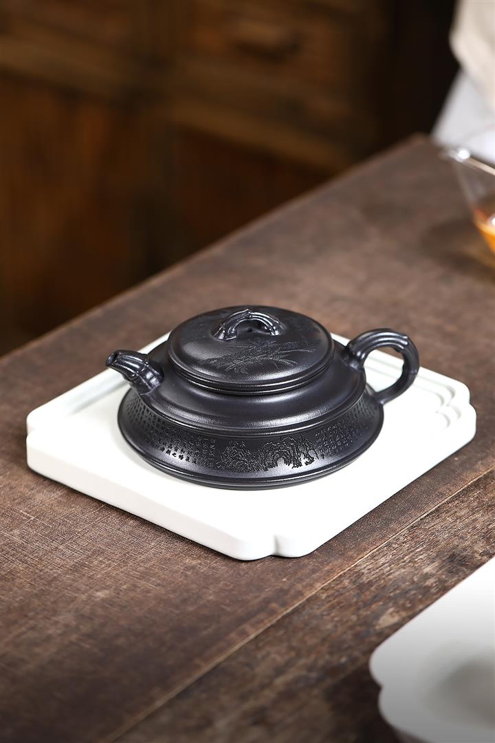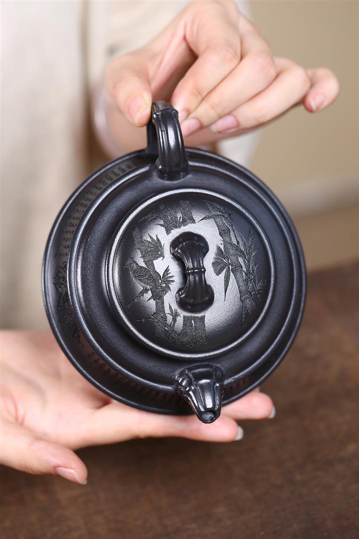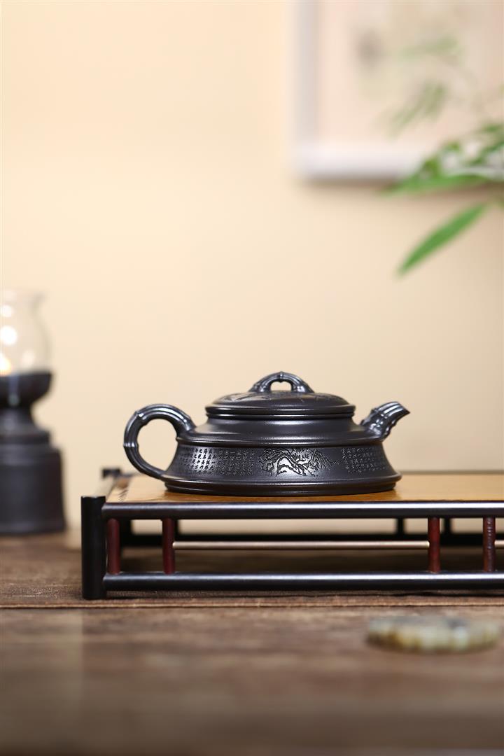 240cc玄鐵石黃雙線竹段蘭亭序集茶壺POT8272